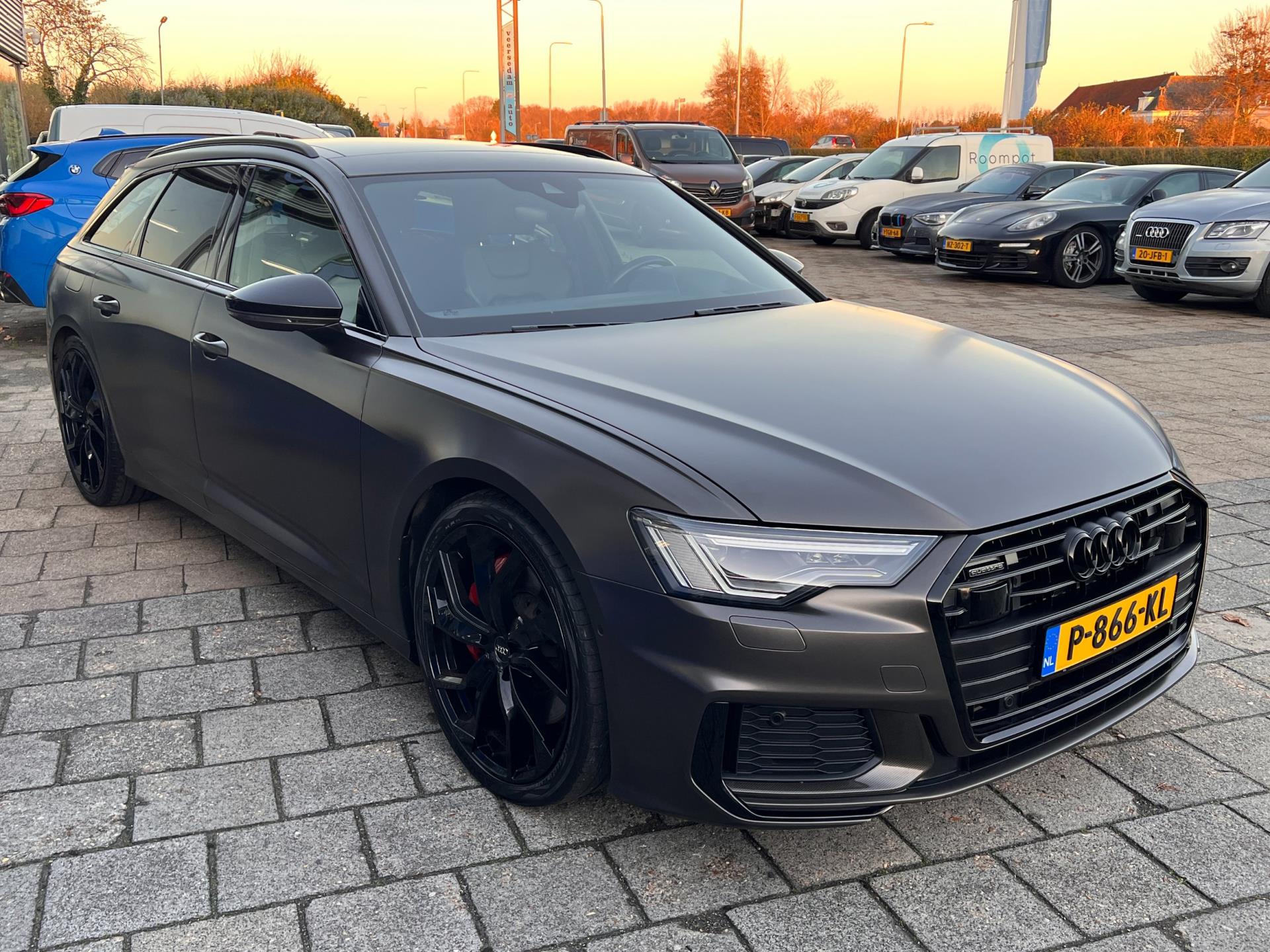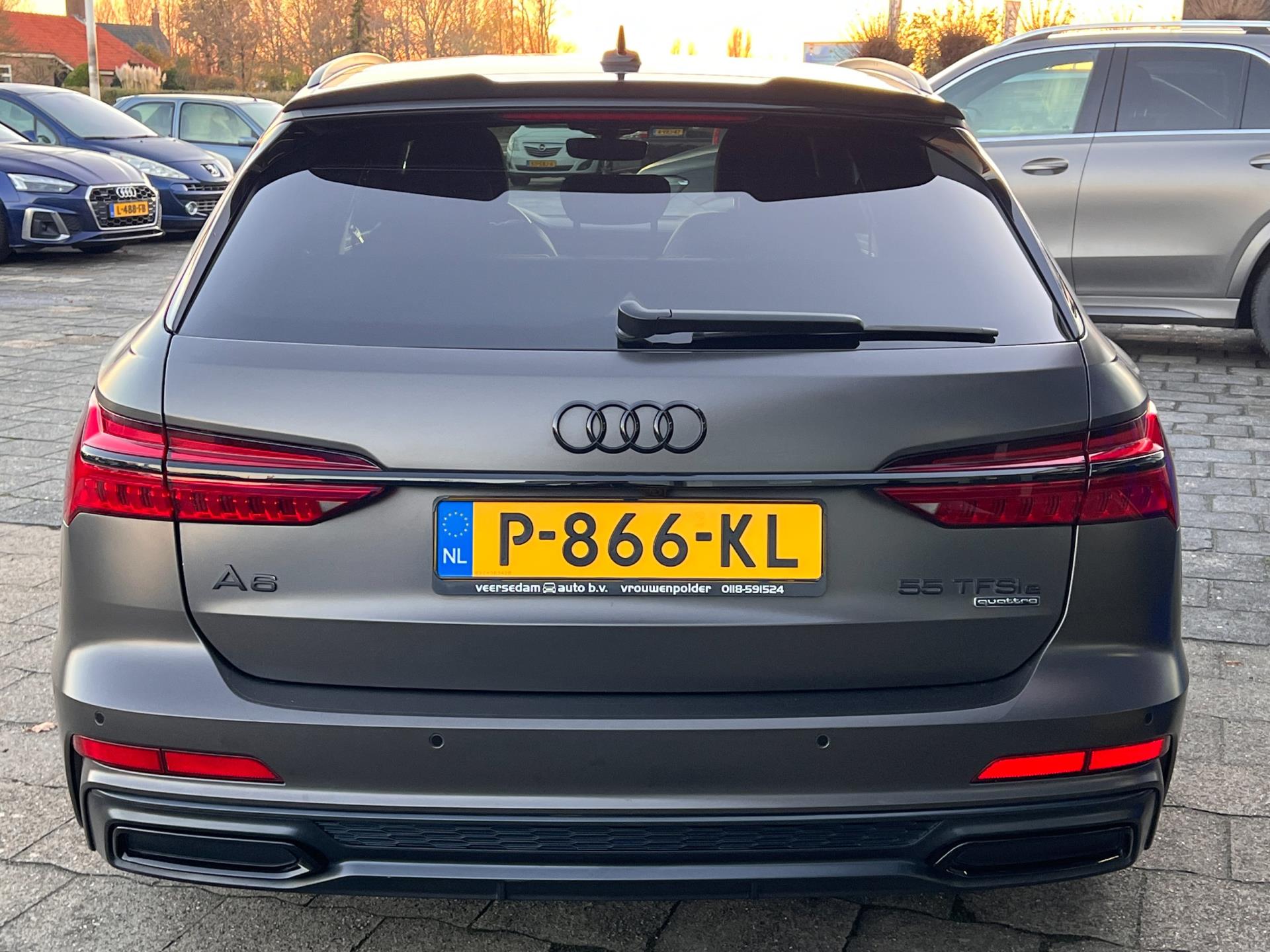 Deze prachtige Audi A6 Avant 55 TFSI E Competition hebben wij ingeruild van een vaste klant. Deze auto zwart metallic, maar deze klant heeft 'm zelf gewrapped in deze stoere kleur. Verder is de auto voorzien van vele opties, waaronder o.a. S-line pakket, luxe leren bekleding, interieurvoorverwarming (standkachel), dodehoek detectie, draadloze telefoonlader, electrisch glazen panoramadak, head up display, verwarmde stoelen en stuurwiel, verkeersborddetectie, assistentiepakket, keyless pakket, wegklapbare trekhaak enz...