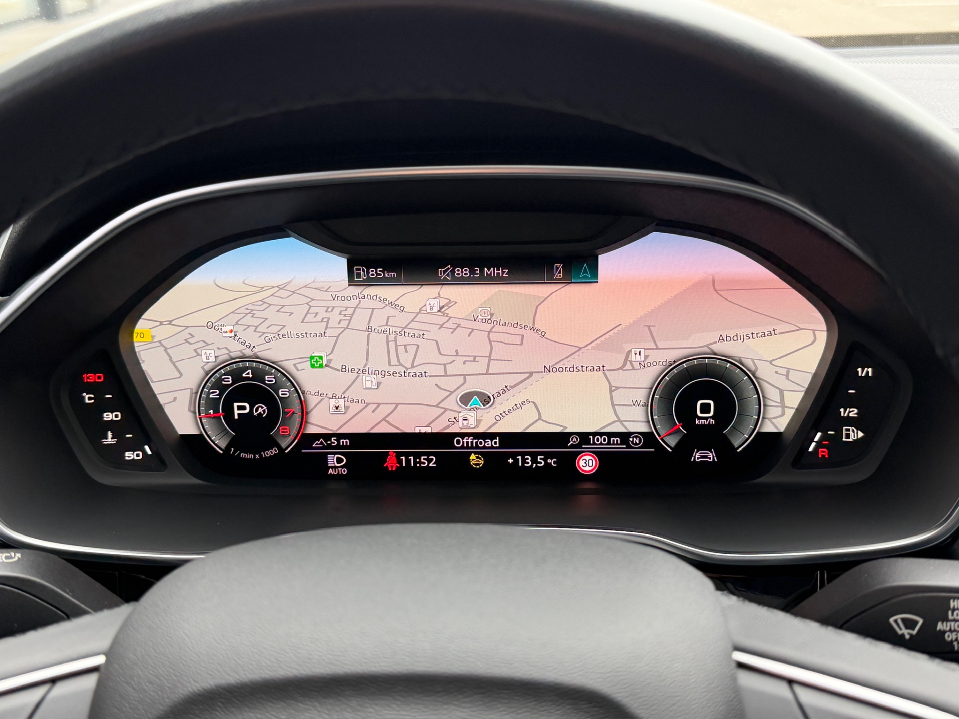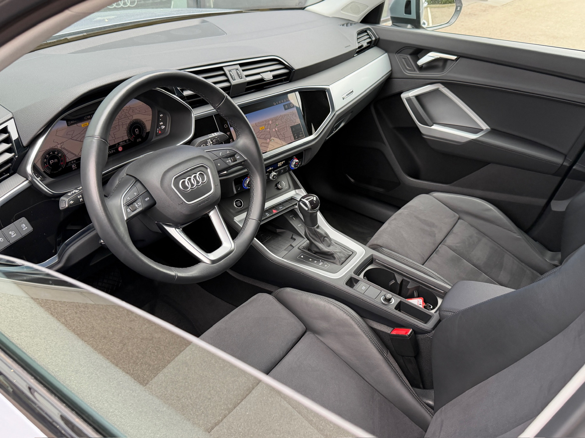 Verder is deze Audi Q3 voorzien van climate control, cruise control, stoelverwarming, virtual cockpit, 19 inch lichtmetalen velgen, elektrisch bedienbare achterklep, wegklapbare trehkaak, extra getint glas, sportstoelen, navigatie, keyless, dode hoek detectie, enz.