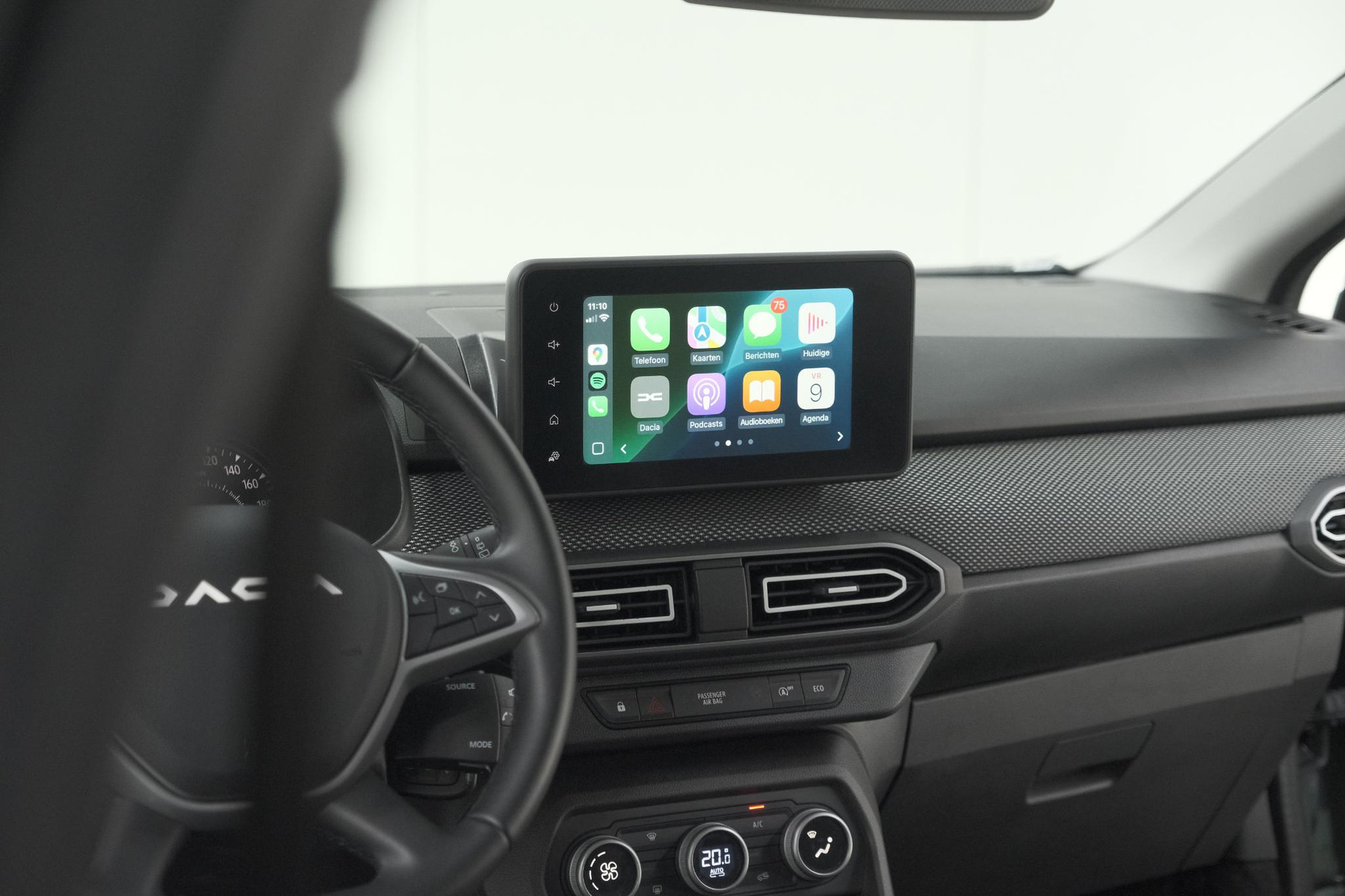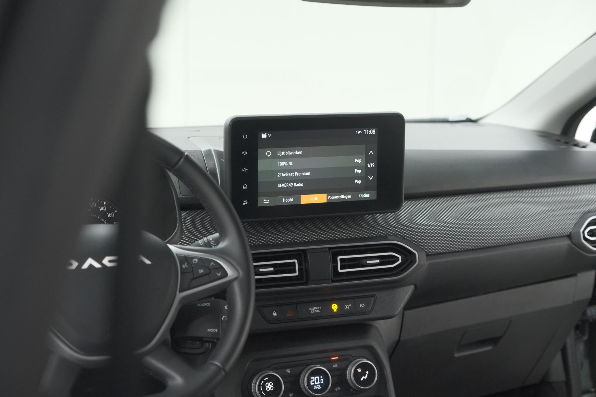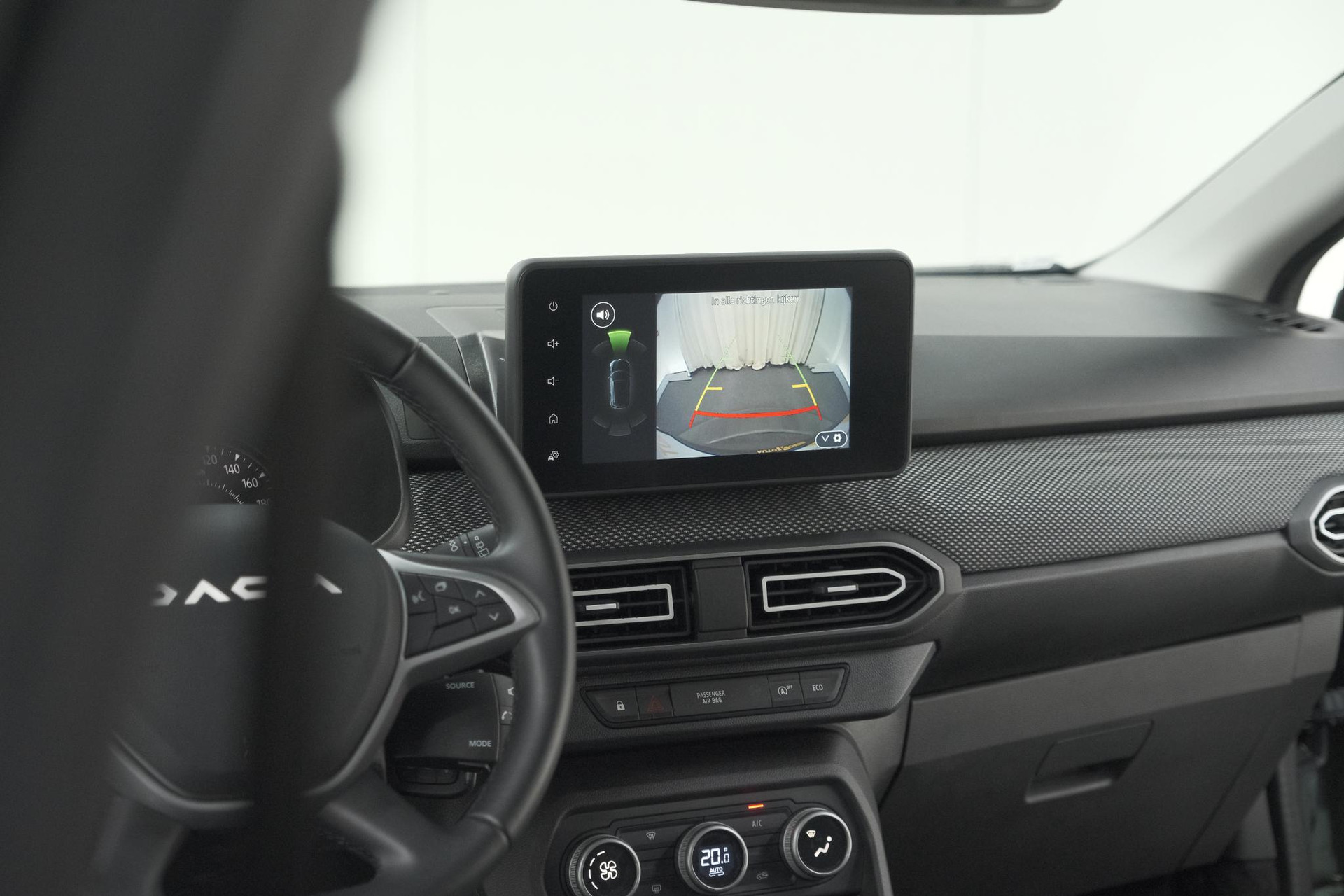 De achteruitrijcamera brengt precies in zicht wat zich achter u bevindt en toont een glashelder beeld op hoge resolutie. Een geluidssignaal waarschuwt hoeveel ruimte u nog heeft. In deze auto beschikt u natuurlijk over een navigatiesysteem. Het audio-installatiesysteem met DAB-radio biedt glasheldere geluidskwaliteit. U bedient dit veilig via het stuurwiel. De achteropkomend verkeer waarschuwing is een mooie veiligheidsoptie, die middels sensoren in de gaten houdt wat er onderweg achter u gebeurt. De automatische airconditioning zorgt voor een prettige binnentemperatuur. De elektronische systemen in deze Dacia helpen u actief om comfortabeler te rijden. Een automatisch inschakelbare verlichting en een regensensor houden de omstandigheden onderweg in de gaten. Natuurlijk behoren cruise control, boordcomputer en verstelbaar stuur ook tot de uitrusting van deze complete auto.
