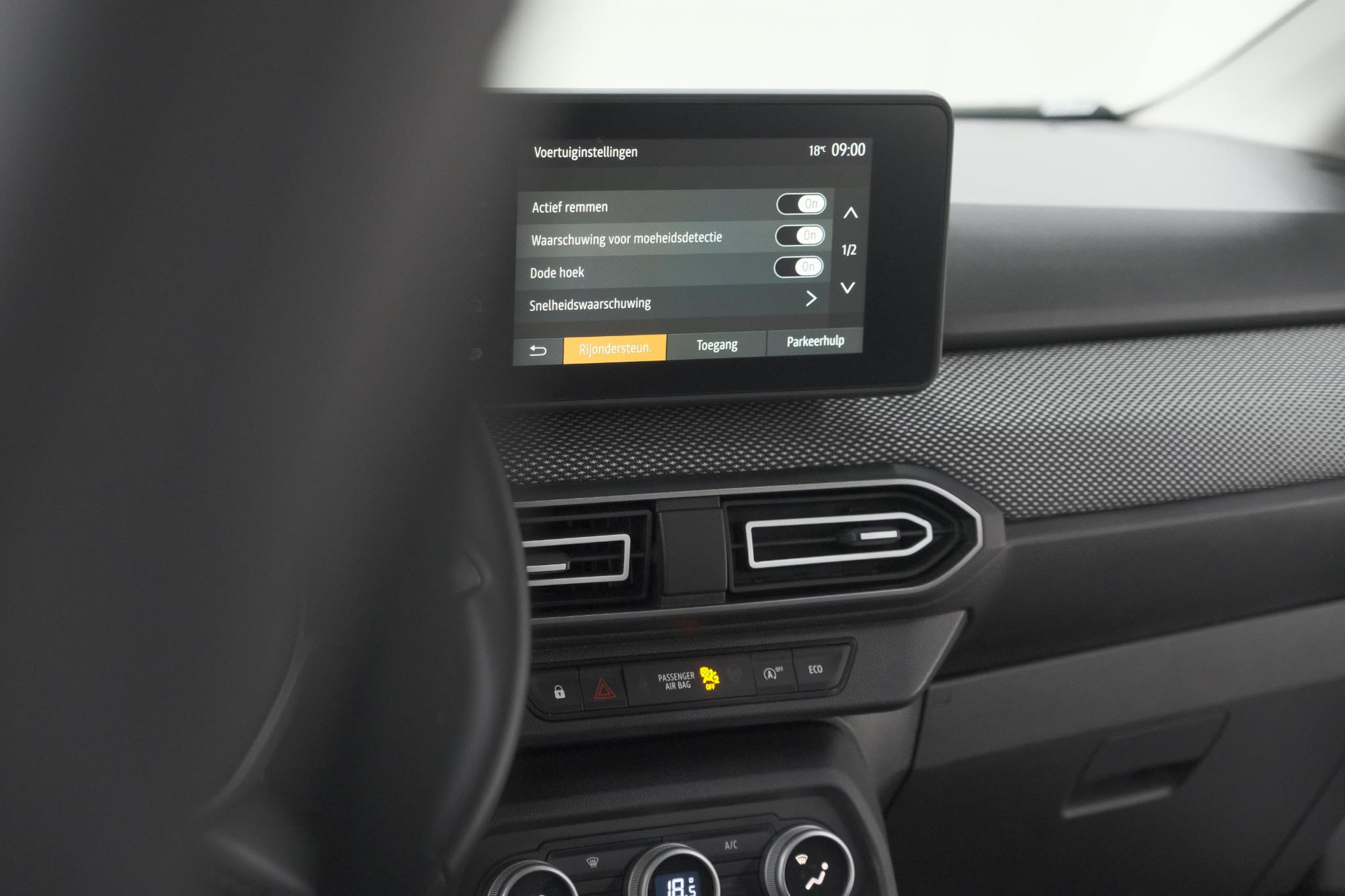 Zoals u mag verwachten van deze Dacia Jogger is hij uitgerust met een reeks aan actieve veiligheidssystemen. Met het Lane-keeping systeem komt u nooit per ongeluk buiten de rijstrook. Deze auto waarschuwt de bestuurder als die tekenen van vermoeidheid vertoont en kan zo ernstige ongelukken voorkomen. Als elke meter en elke seconde telt, wilt u dat het remsysteem maximaal presteert. Met de Brake Assist bent u daar zeker van. De auto is ook uitgerust met hill hold functie en bandenspanningcontrolesysteem.