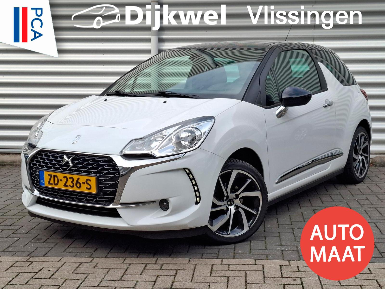 Schitterende DS 3 110 pk Connected Chic EAT6 Automaat in de kleurcombinatie wit met zwart dak. Zeer compleet voorzien van o.a: Touchscreen navigatie, Climate-control (airco), Cruise-control, Bluetooth, DAB+, Apple Carplay, Pack HiFi, Sportstoelen, 17" lichtmetalen velgen met 4-seizoenenbanden, achteruitrijcamera, extra getint glas, etc, etc. De verkoopprijs is compleet rijklaar inclusief 12 maanden Bovag-garantie, Nationale Autopas, onderhoudsbeurt, APK en multi-point kwaliteitscontrole.