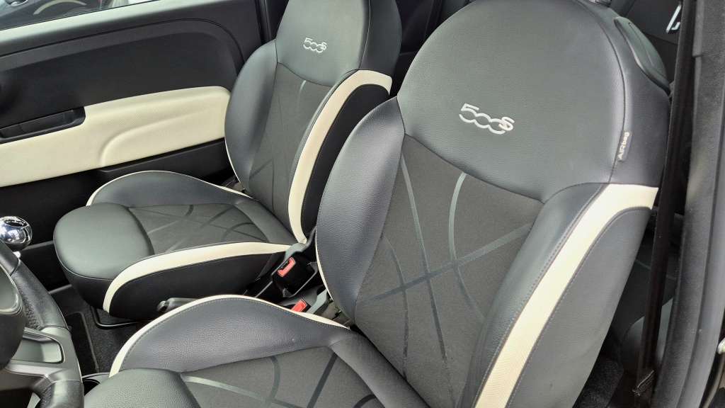 Deze Fiat 500 is voorzien van lichtmetalen velgen , die niet alleen zorgen voor een stoere uitstraling maar ook zorgen voor een comfortabele rijervaring. Het lederen stuur voegt een vleugje luxe toe aan het interieur van de auto, terwijl het multifunctionele stuur zorgt voor eenvoudige bediening van verschillende functies zonder uw handen van het stuur te halen.