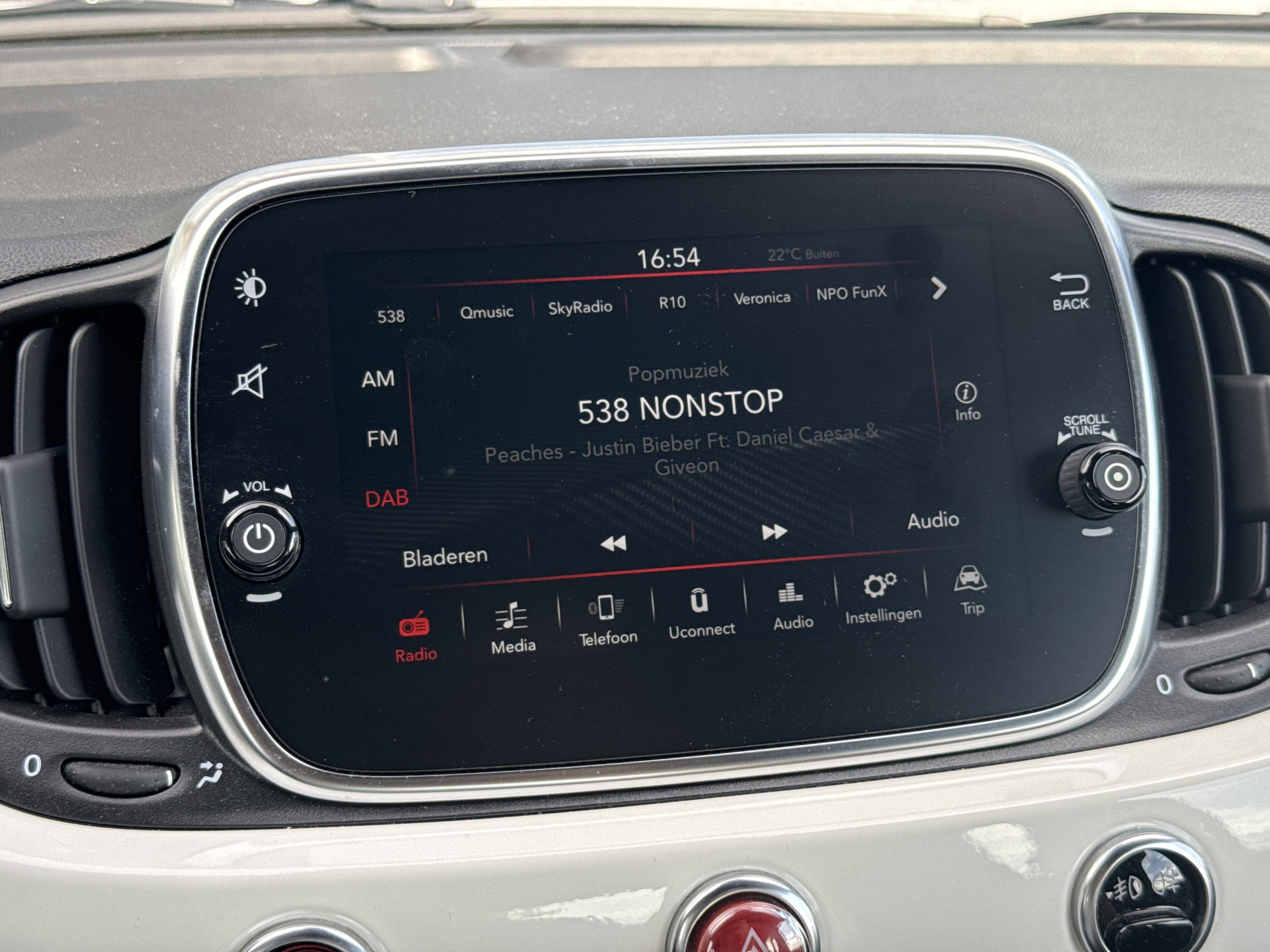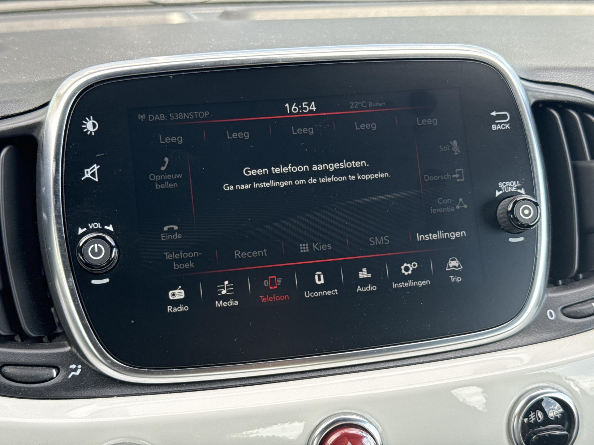 Het full map navigatiesysteem en het audiosysteem (met DAB-ontvangst!) bedient u met knoppen op het stuur. Natuurlijk is er ook automatische airconditioning aanwezig. Parkeersensoren ondersteunen u tijdens het in- en uitparkeren. Achter het stuur van deze Fiat bent u niet alleen. De auto kijkt als het ware met u mee tijdens de rit. De regensensor schakelt de ruitenwissers in als het nodig is en de automatisch inschakelbare verlichting doet de lichten voor u aan. Ook lederen stuur, centrale deurvergrendeling met afstandsbediening en boordcomputer horen tot de voorzieningen op deze auto.