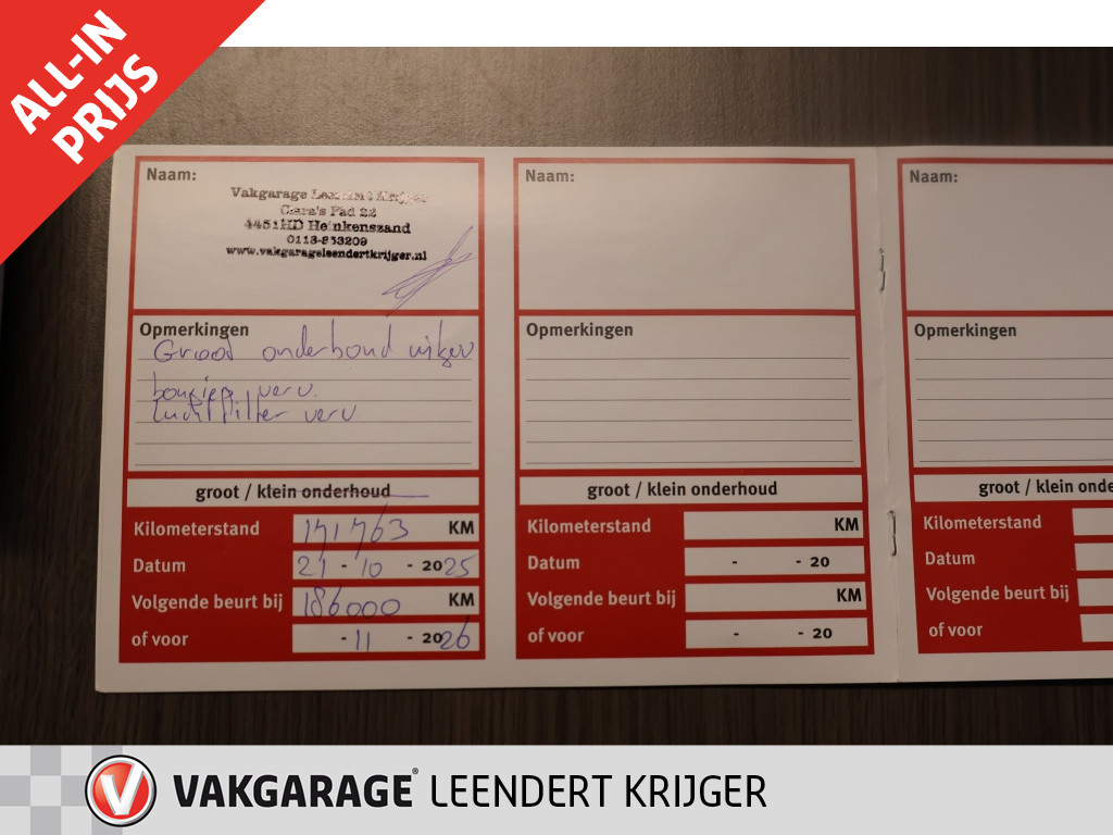 Onderhoudsboekjes: AanwezigFinanciële informatie