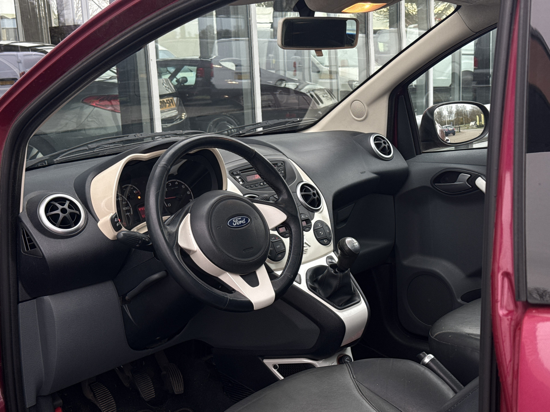 Grachten, singels, steegjes en straatjes: deze Ford Ka wurmt zich er royaal tussendoor. Met zijn pittige benzinemotor stuurt u deze auto gemakkelijk en vlot door het verkeer. Deze Ford Ka is luxe afgewerkt. Kijk maar naar het lederen interieur! Het glazen panoramadak laat u genieten van een wijds uitzicht en meer lichtinval.