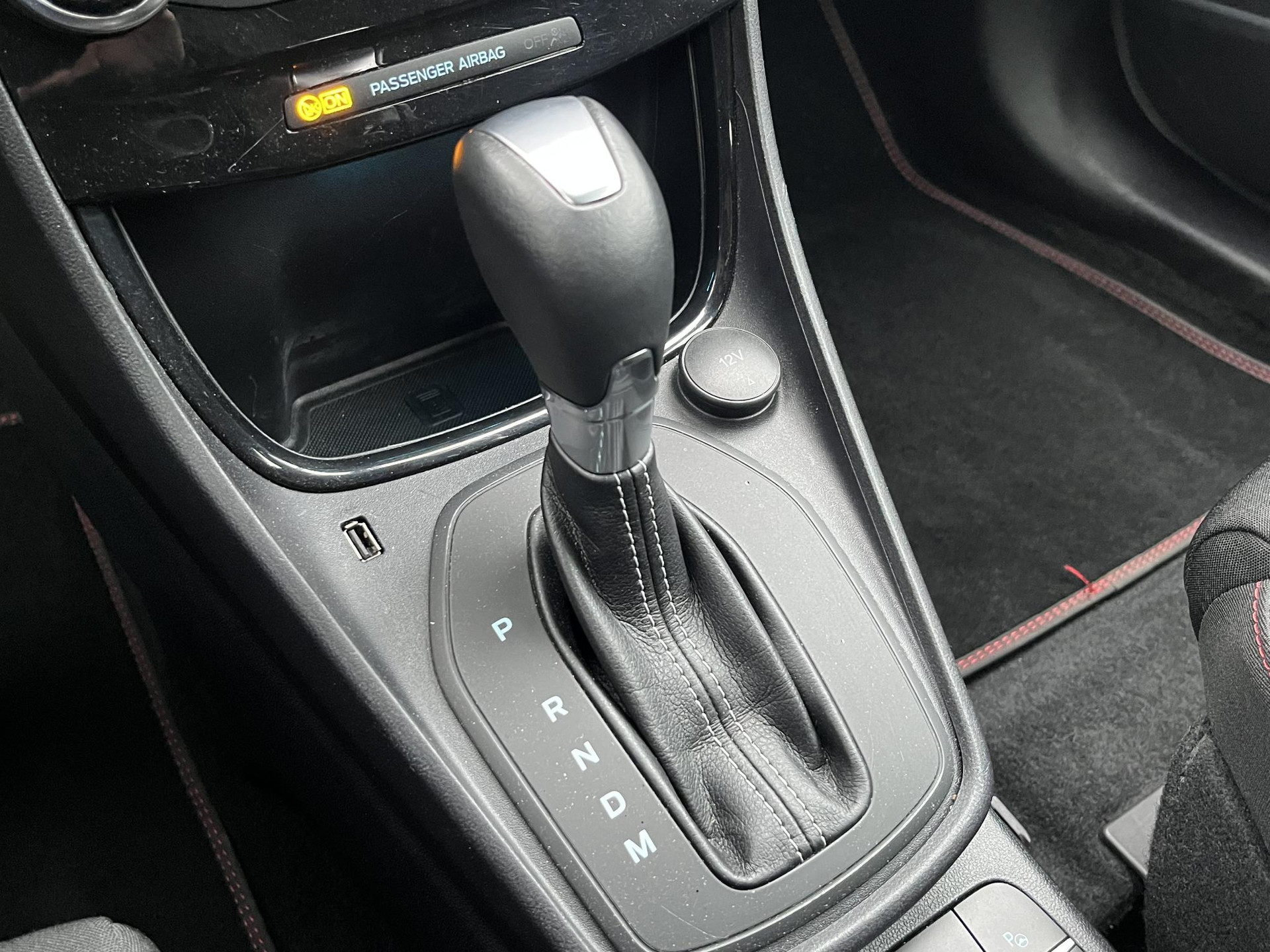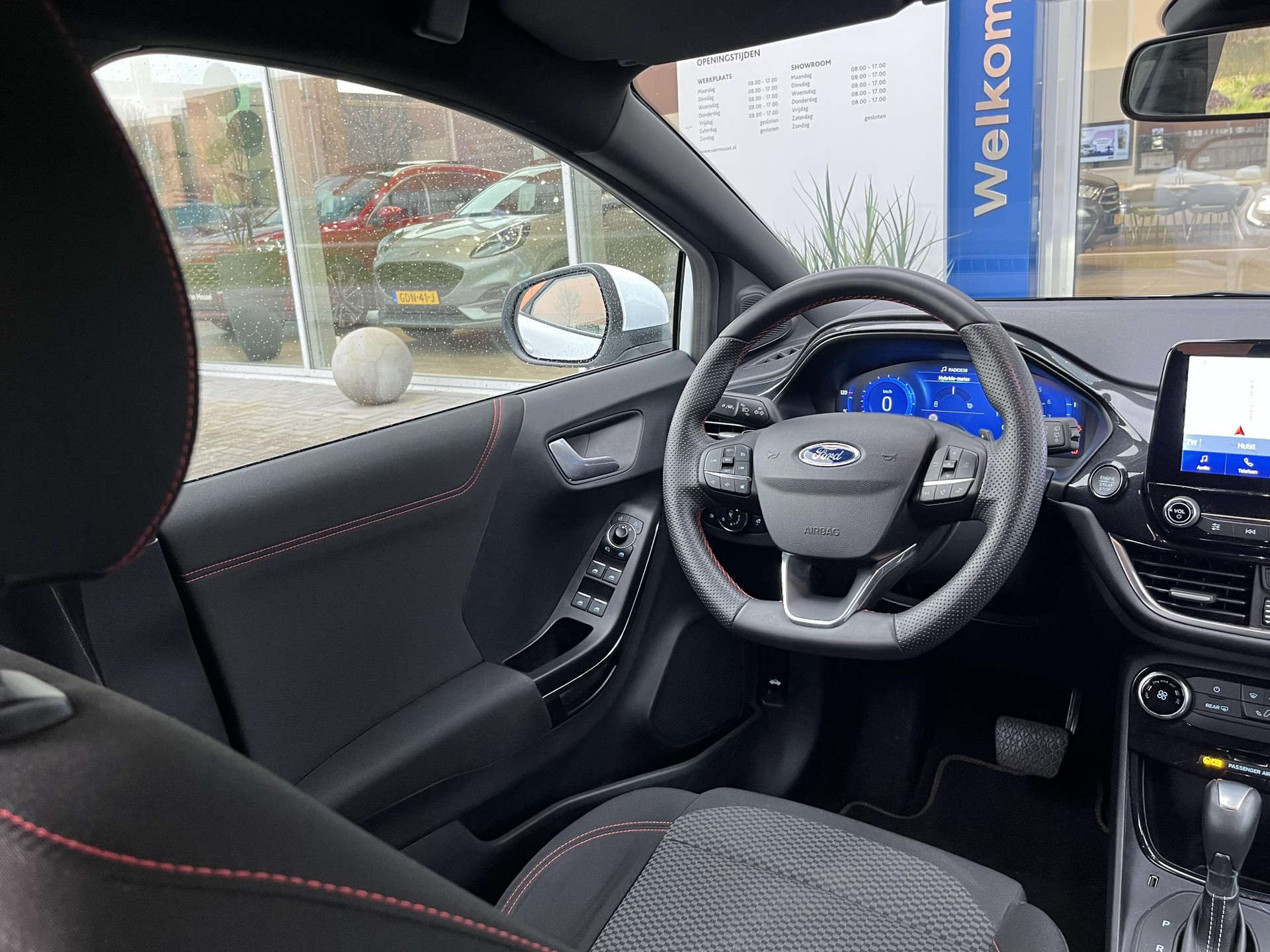 • Lederen stuurwiel met rode stiksels en schakelpeddels (elektrisch verwarmbaar)