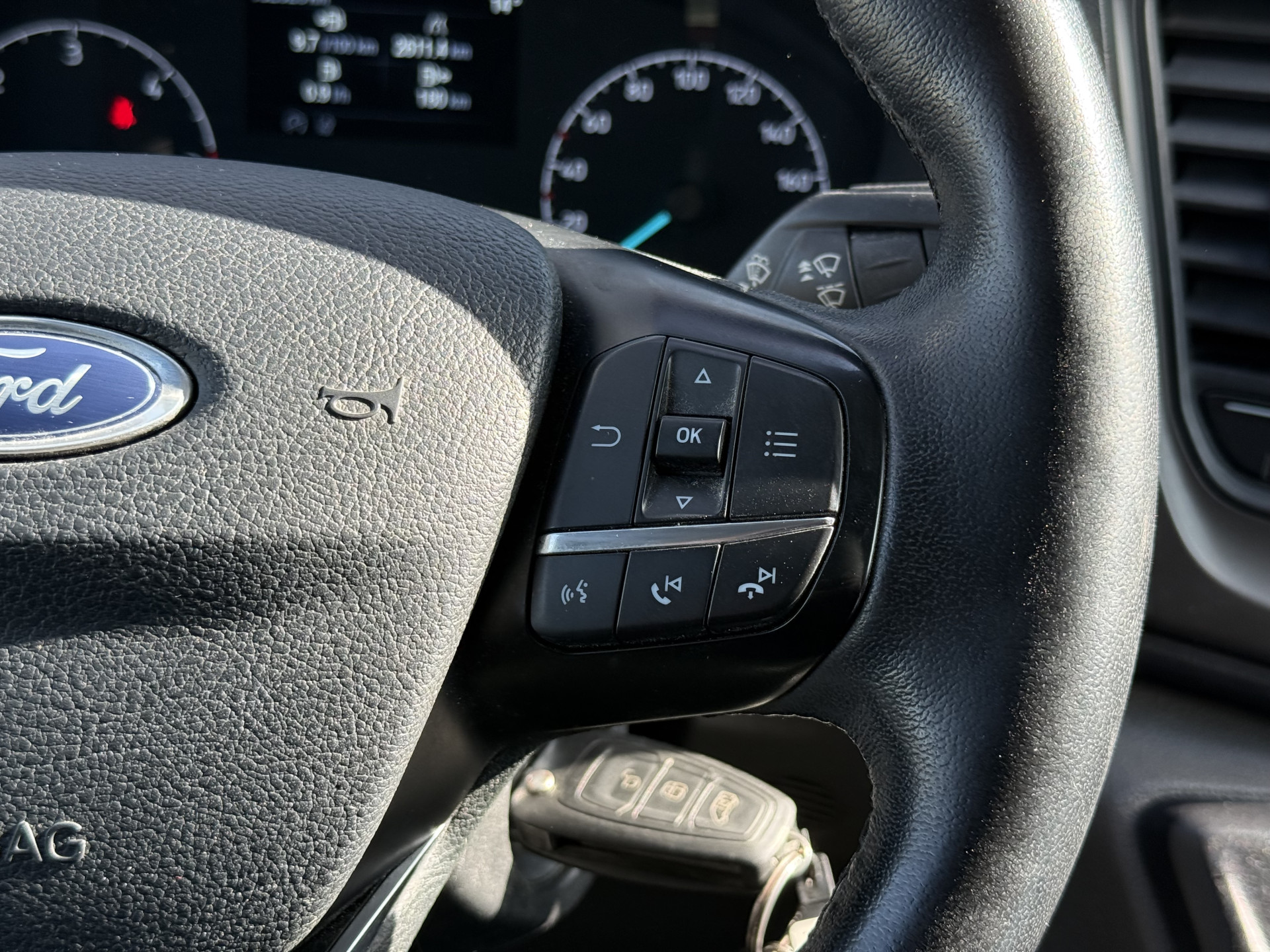Alles vrij achter? De achteruitrijcamera laat het meteen zien. De conditie van deze auto is 24/7 inzichtelijk dankzij Connected Services. Niet meer op de tast een andere zender zoeken of het volume aanpassen. En al helemaal niet met uw ogen van de weg af raken. De audiobediening op het stuur zorgt dat u alles van onder uw vingers regelt. In deze Ford kunt u zich concentreren op het verkeer, terwijl de auto de omgeving voor u in de gaten houdt. Een automatisch inschakelbare verlichting zorgt dat de verlichting aangaat als het donkerder wordt - in tunnels bijvoorbeeld - en de regensensor schakelt de ruitenwissers in als het nodig is. U hoeft er niets aan te doen. Met de cruise control kunt u zorgen dat u op die rechte stukken toch uit beeld blijft bij de flitsers. De Ford is standaard voorzien van: airconditioning, lederen stuur, centrale deurvergrendeling met afstandsbediening en boordcomputer.