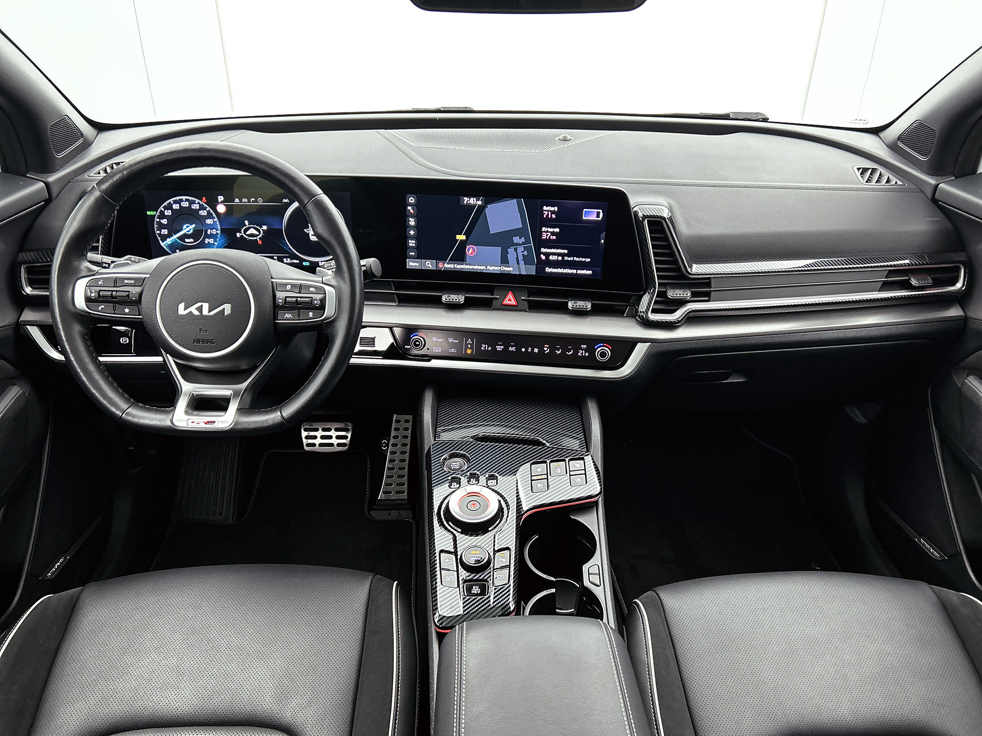 Kia is als merk een absolute publiekslieveling. Vanwege z'n design, z'n betaalbaarheid en z'n ruime keuze in modellen. Movement that inspires! De toekomst is hybride: de combi van elektromotor en verbrandingsmotor maakt deze auto extra aantrekkelijk en voordelig in gebruik. Voorin is het 's winters genieten met de verwarmbare voorstoelen voor zowel bestuurder als bijrijder. Voor extra lichtinval en een frisse luchtstroom zorgt het elektrisch bediende panoramadak. De achterklep opent automatisch met een druk op de knop. Handig als u met volle handen staat. Deze Kia Sportage heeft een verwarmd stuurwiel. Nooit meer koude handen onderweg. De geavanceerde matrix LED-verlichting in de koplampen levert maximaal helder zicht en past zich subtiel aan zodra er een tegenligger komt. Zonder lichtkwaliteitsverlies! Natuurlijk behoren 19 inch lichtmetalen velgen, adaptief dempingsysteem, warmtewerend glas, trailer assistent, in delen neerklapbare achterbank en LED-achterlichten ook tot de uitrusting van deze complete auto.