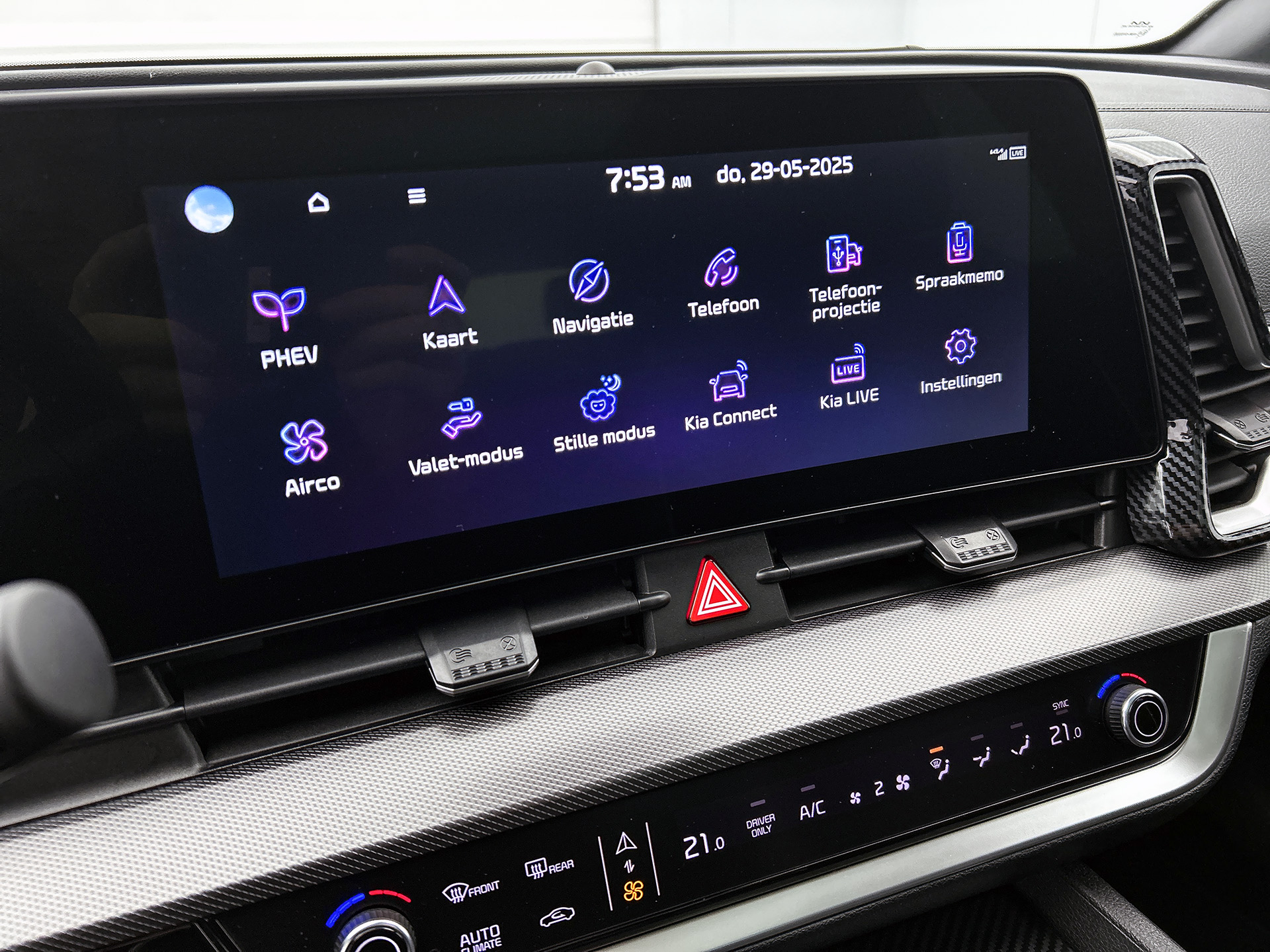 De Kia Sportage is ook voorzien van ADAS. Deze Advanced Driver Assistence Systems fungeren als extra ogen en oren: ze houden voor u de weg in de gaten en grijpen in wanneer dat nodig is. U rijdt ook veiliger omdat deze auto voor u de verkeersborden langs de weg kan lezen. De belangrijkste borden worden op uw instrumentarium geprojecteerd, zodat u ze niet kunt missen. Een camera houdt de juiste koers binnen de rijstrook in de gaten en het Lane-keeping systeem corrigeert bij afwijkingen. Het forward collision warning-systeem is constant alert en detecteert via sensor de afstand tot voorliggers. Wordt die te klein, dan volgt een automatische waarschuwing. In deze Kia vinden we verder een dodehoekdetectie, hill hold functie, vermoeidheidsherkenning, autonoom remsysteem en bandenspanningcontrolesysteem.