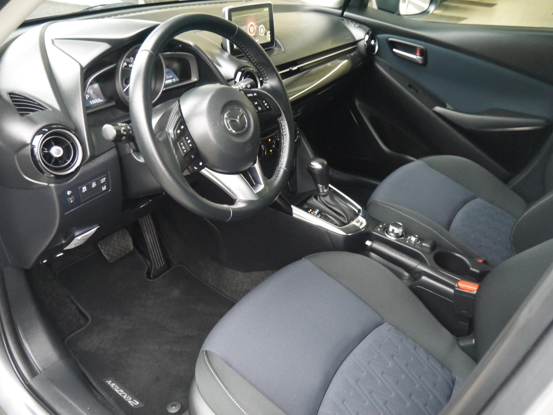 Dit is een keurig onderhouden Mazda 2 1.5 Skyactiv-G TS+ uit 2016, uitgevoerd in een stijlvolle metallic lak met slechts 59.059 kilometer op de teller.