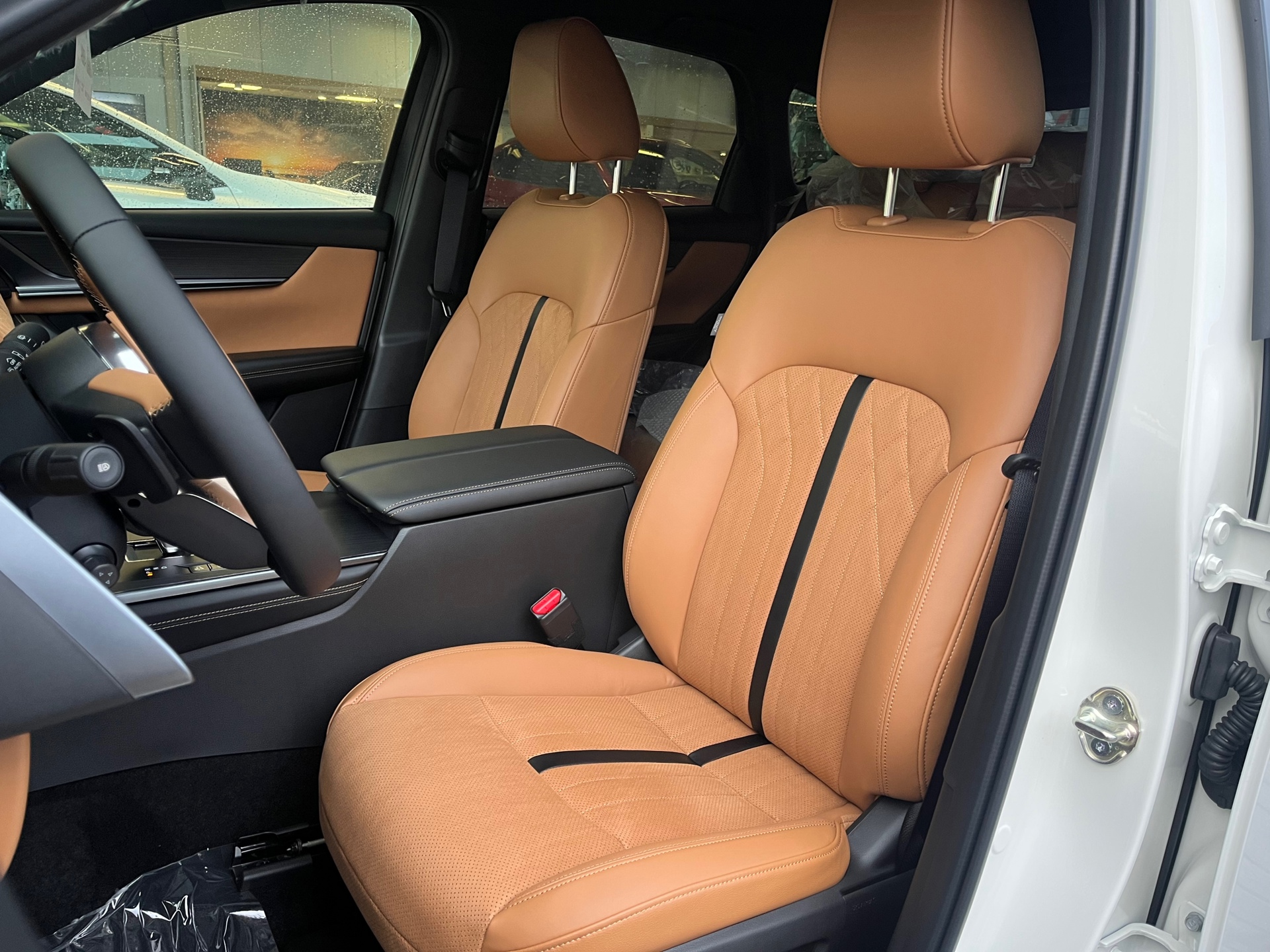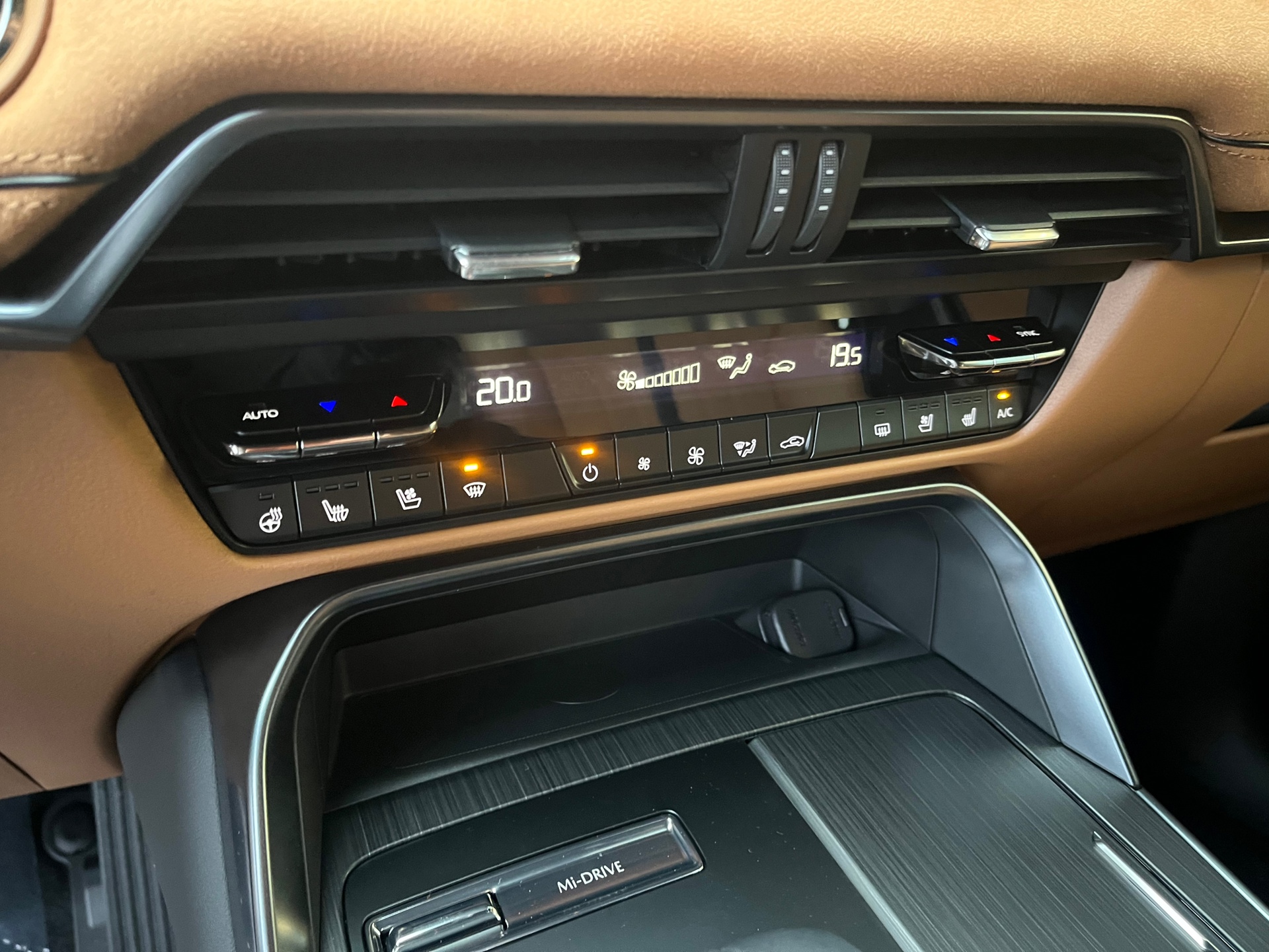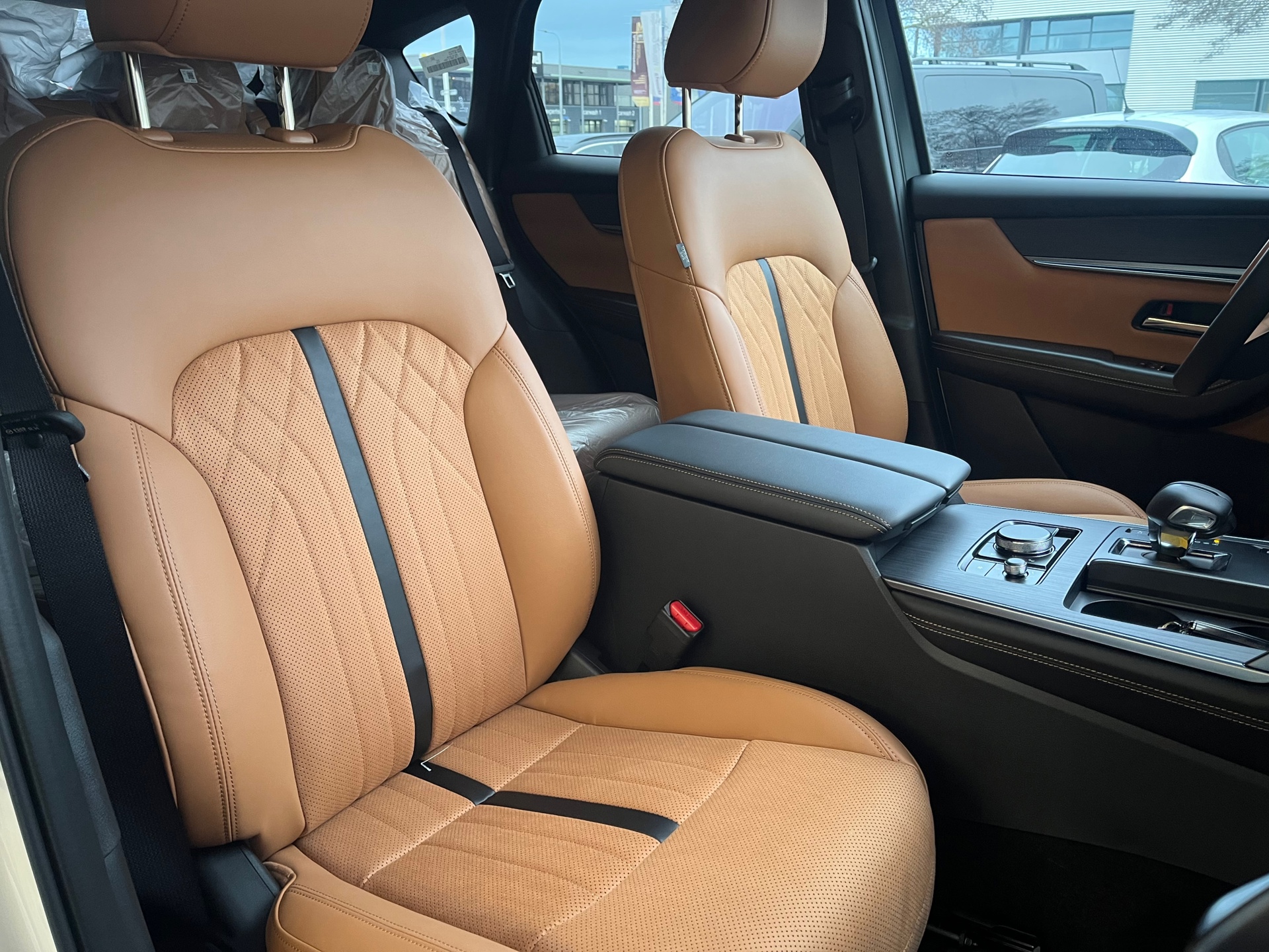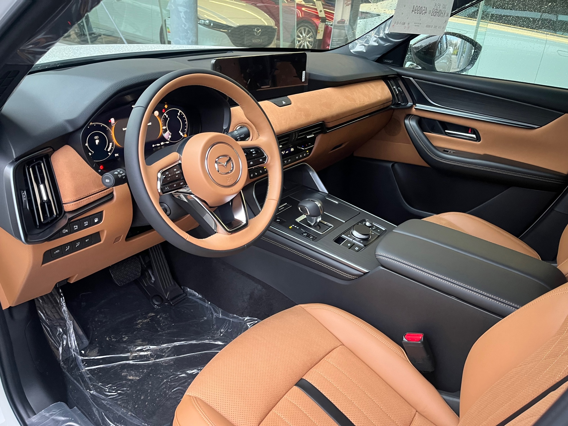 Het interieur is een echte blikvanger. Het luxe tan lederen interieur vormt een prachtig contrast met de sportieve Homura styling en zorgt voor een hoogwaardige en comfortabele sfeer in de auto.