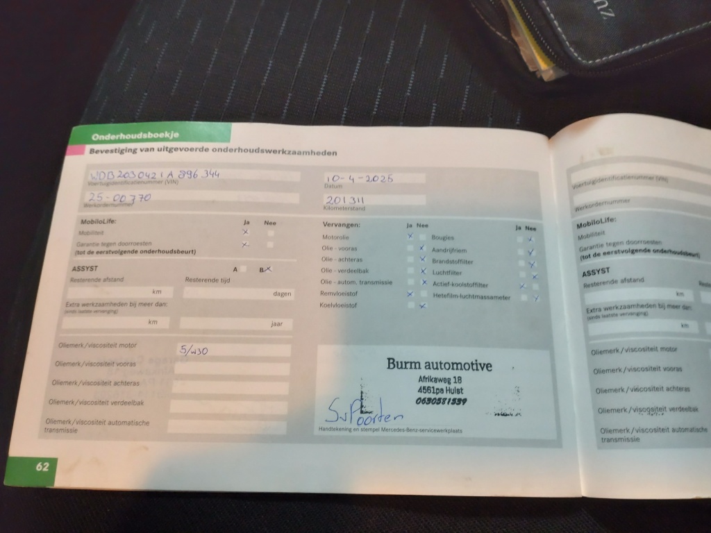 Onderhoudsboekjes: AanwezigFinanciële informatie
