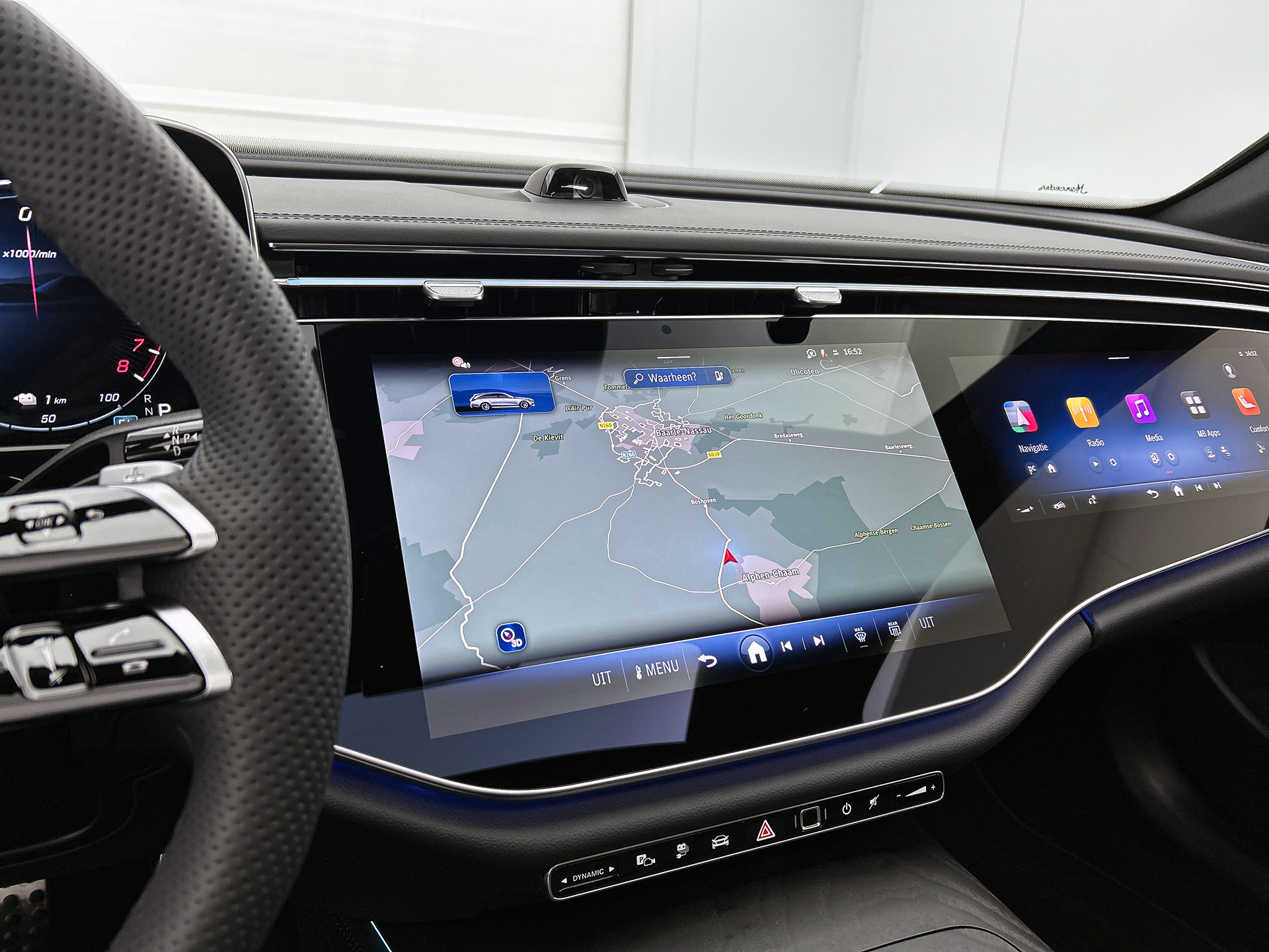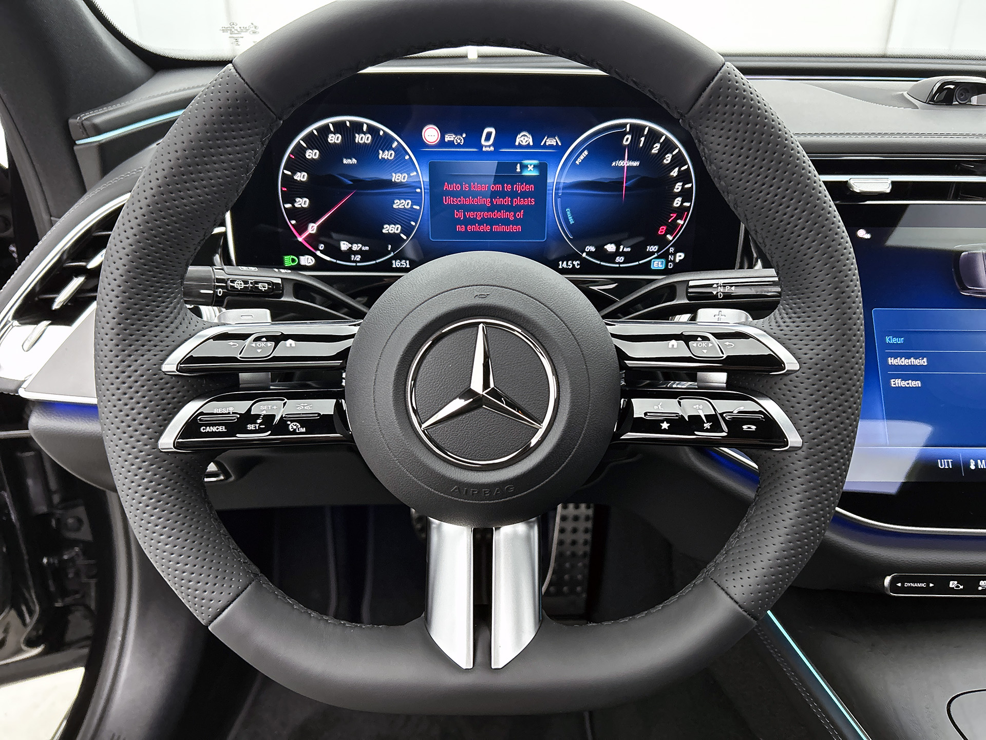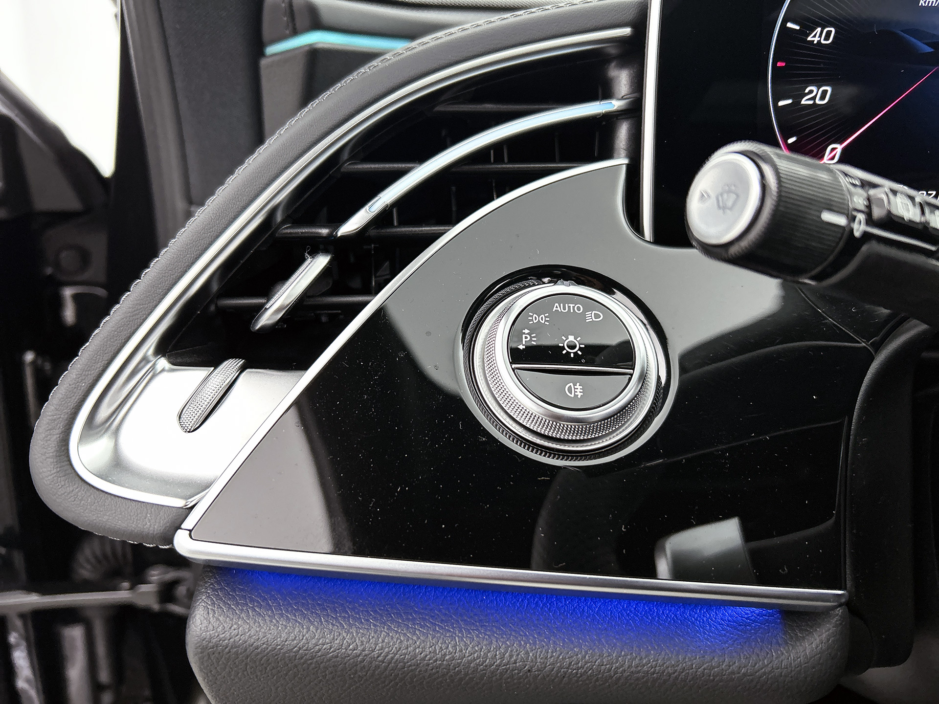 Het zal je verbazen hoe deze auto in staat is om voor jou de omgeving en het verkeer om je heen in de gaten te houden. Jachtvliegers weten het al jaren: belangrijke info projecteer je in je zichtveld zodat je je hoofd niet meer hoeft te draaien. De hier aanwezige head-up display doet precies hetzelfde! Dat de auto steeds meer taken van de bestuurder overneemt, merk je bijvoorbeeld aan het systeem voor verkeersbord-detectie in deze Mercedes-Benz. Onbedoeld buiten de rijstrook raken wordt voorkomen door het Lane-keeping systeem. De auto is ook uitgerust met dodehoekdetector detectiesysteem, forward collision warning system, vermoeidheidsherkenning, autonoom remsysteem en bandenspanningcontrolesysteem.