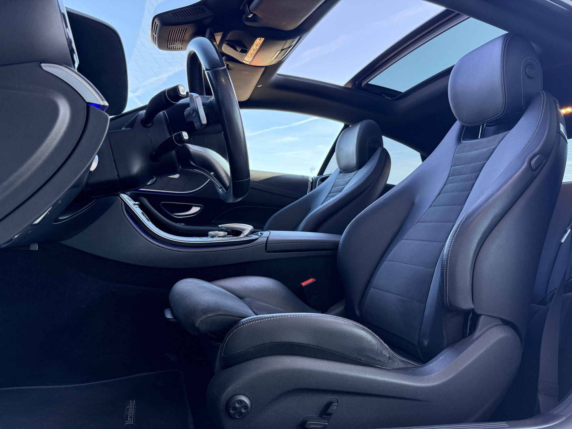 U rijdt gemakkelijk, comfortabel en zonder zorgen met deze Mercedes-Benz E-klasse Coupé. Het is een auto van het bouwjaar 2018. Omdat het oog ook wat wil, is de AMG-styling een heel aantrekkelijke plus. Met een viercilinder dieselmotor en een automatische transmissie beschikt deze Mercedes-Benz over uitstekende prestaties. Topklasse: daar hoort leren bekleding absoluut bij. 's Winters komen de verwarmbare voorstoelen heerlijk van pas. De sportstoelen geven u veel zitsteun. Het daglicht valt in overvloed via het elektrisch bediende panoramadak op het fraaie interieur. Ook is de auto voorzien van: 20 inch lichtmetalen velgen, LED koplampen, AMG-styling, donker getint glas achter, LED-achterlichten en verstelbare lendensteunen.