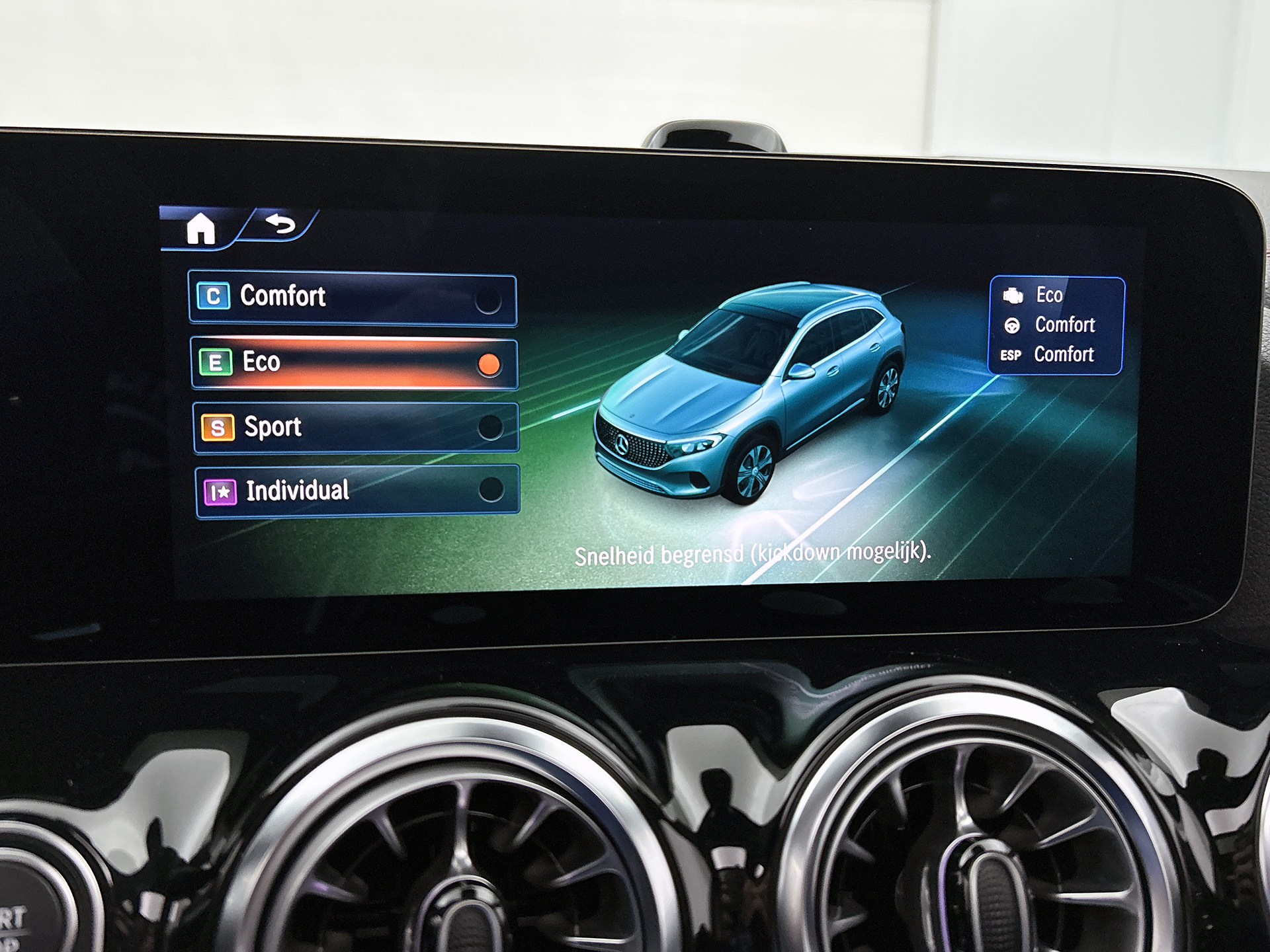 Elektronische veiligheidsvoorzieningen helpen jou onderweg om de situatie op de weg te beoordelen. Deze systemen waarschuwen je als er een riskante situatie ontstaat, en kunnen in bepaalde gevallen ook zelf ingrijpen. Recht voor je zie je de weg én alle dashboardinformatie dankzij de head-up display Deze Mercedes-Benz EQA is ook behulpzaam als het gaat om een rechte koers. Het Lane-keeping systeem signaleert en corrigeert als je onbedoeld de rijstrooklijnen dreigt te overschrijden. De dodehoekdetectie waarschuwt als een ander voertuig zich in jouw dode hoek bevindt. Bovenop deze veiligheidsfeatures heeft deze Mercedes-Benz bovendien actief stadsremsysteem en bandenspanningcontrolesysteem.