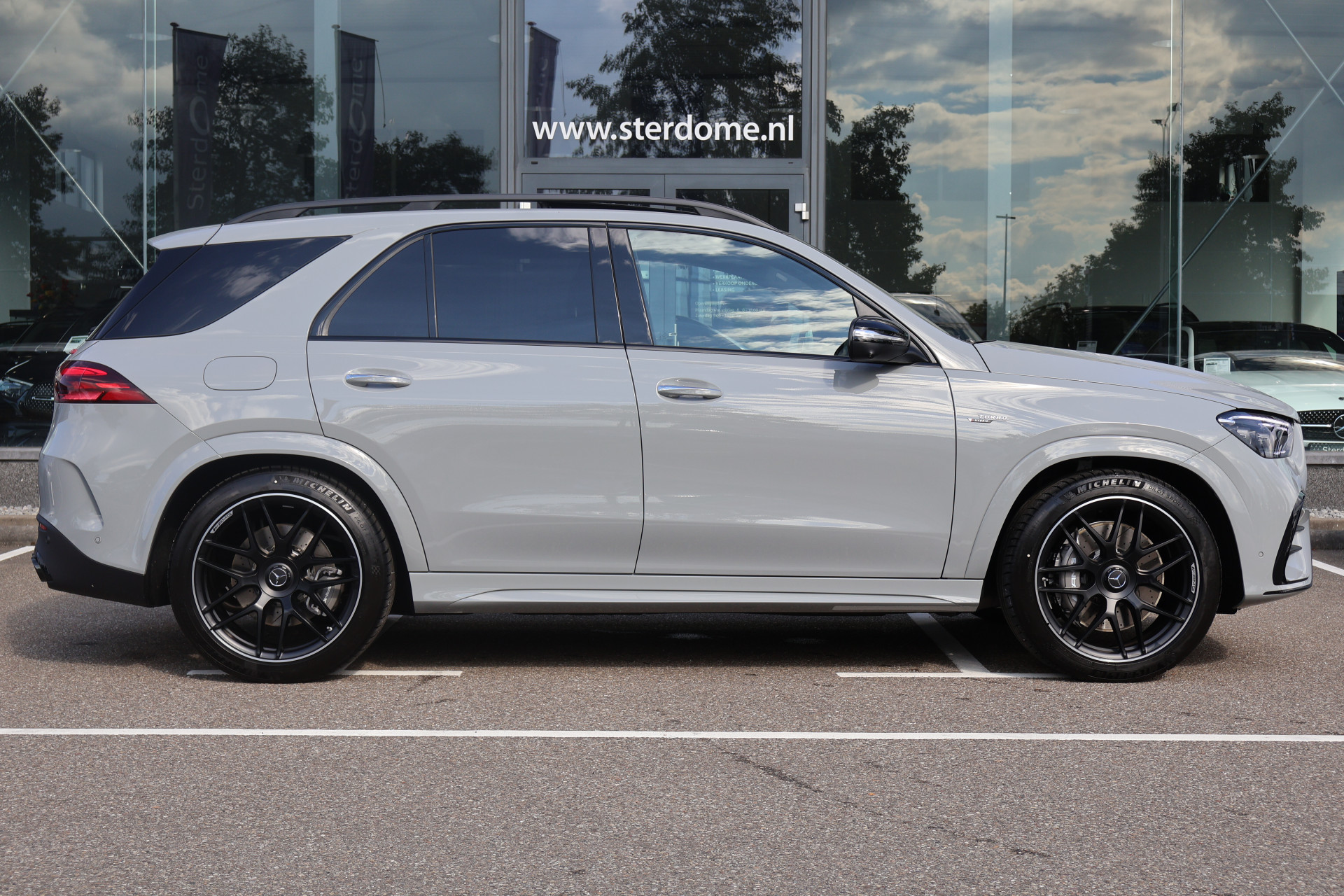 Van buiten straalt de GLE 53 Hybrid pure AMG-DNA uit: een imposante grille met verticale lamellen, sportieve bumpers, 21-inch AMG-velgen en een atletische lijnvoering.