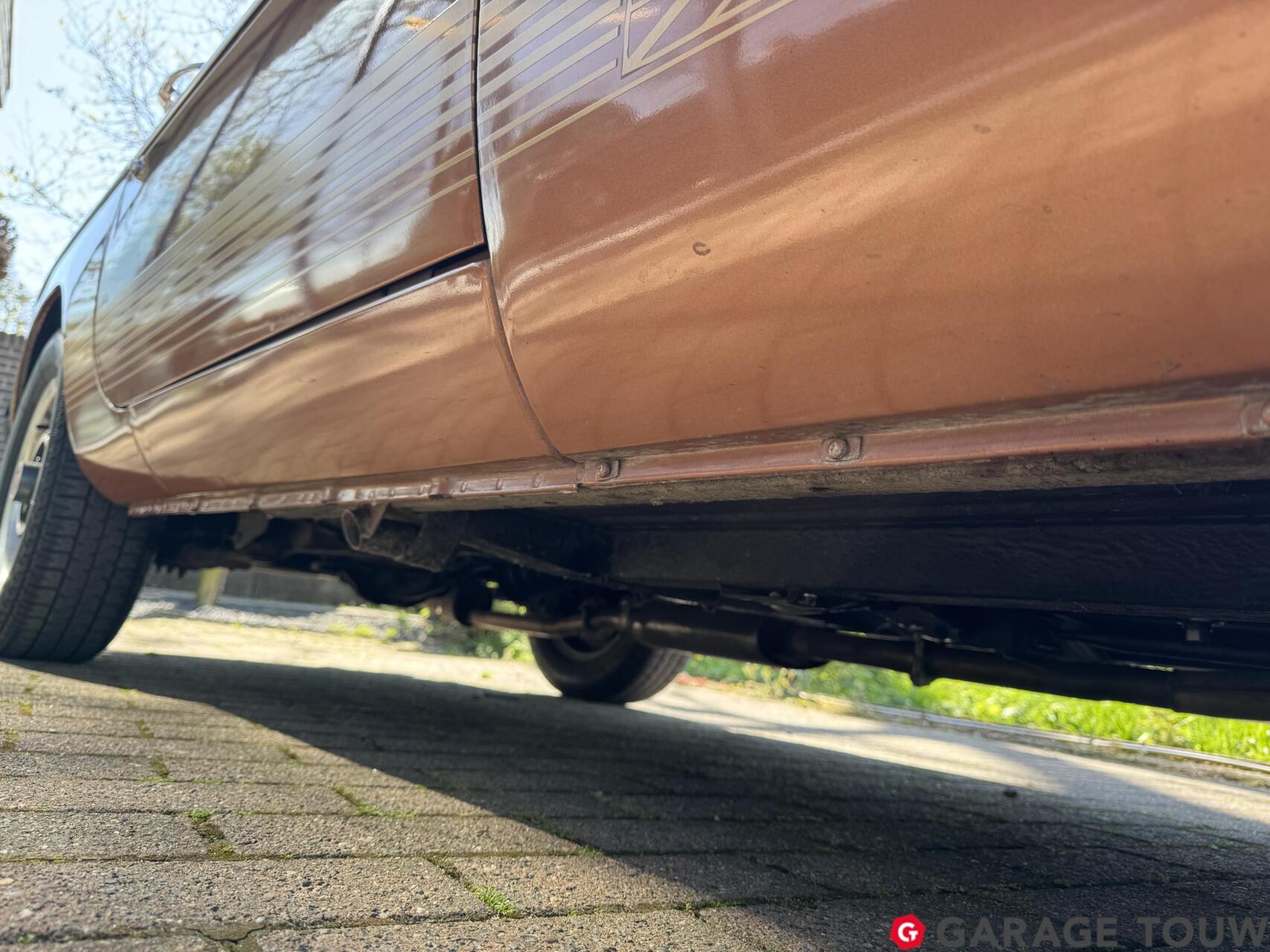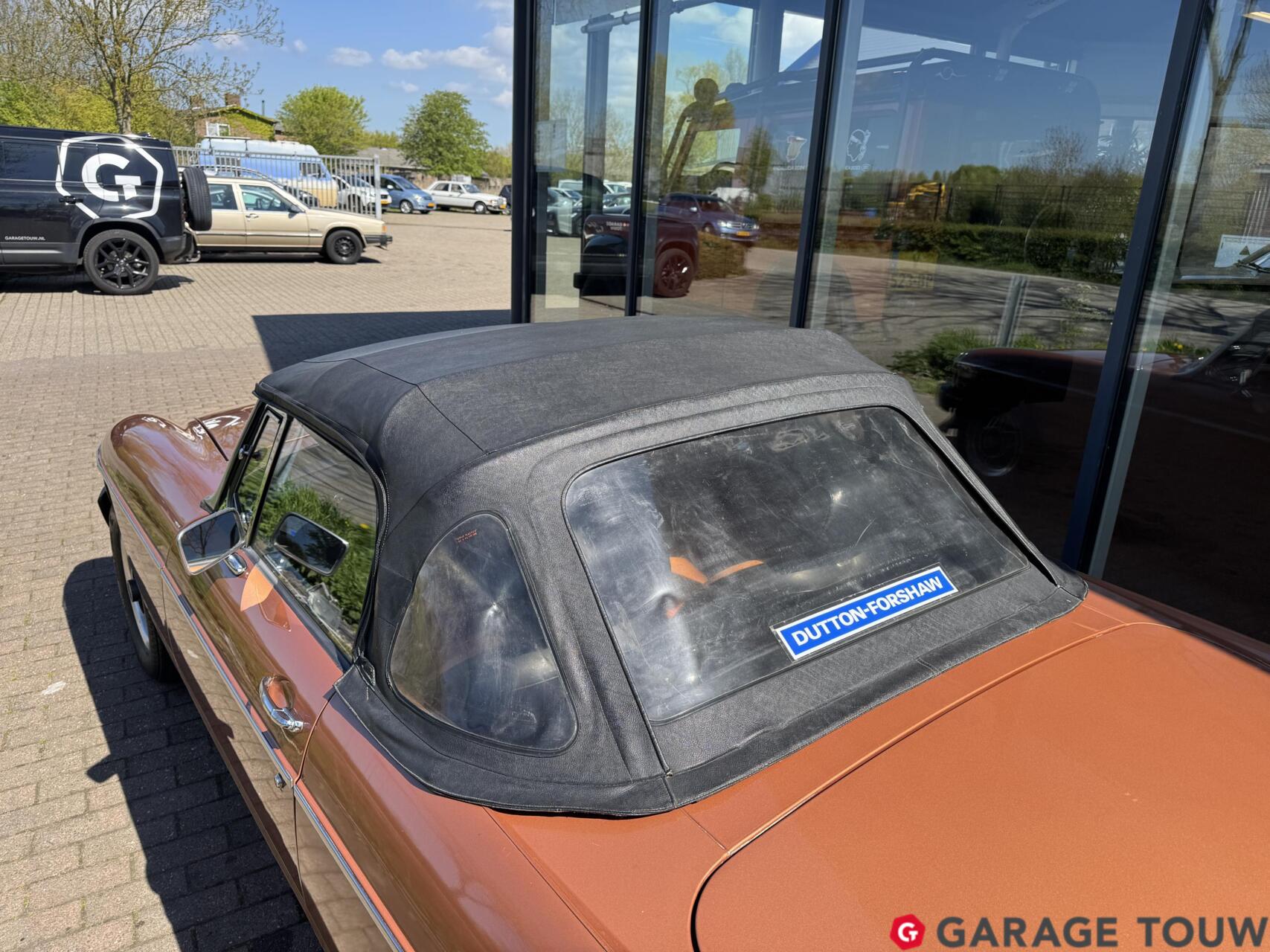 Alle 420 gebouwde roadsters zijn origineel uitgevoerd in brons metallic lakwerk met met gouden striping aan de zijkant en oranje stoelbekleding. Een fraaie en retro kleurencombinatie. Dit exemplaar is schade- en roestvrij. De rubbers, verlichting en het chroomwerk verkeert in een goede staat. De algehele optische staat is goed met slechts minimale gebruikerssporen. Kenmerkend voor de latere B modellen zijn de voorspoiler en de populaire 4-spaaks lichtmetalen velgen, die overigens ook nog in goede staat verkeren. Ook de softtop verkeert in goede staat zonder scheuren of beschadigingen, en het sluitwerk functioneert goed.