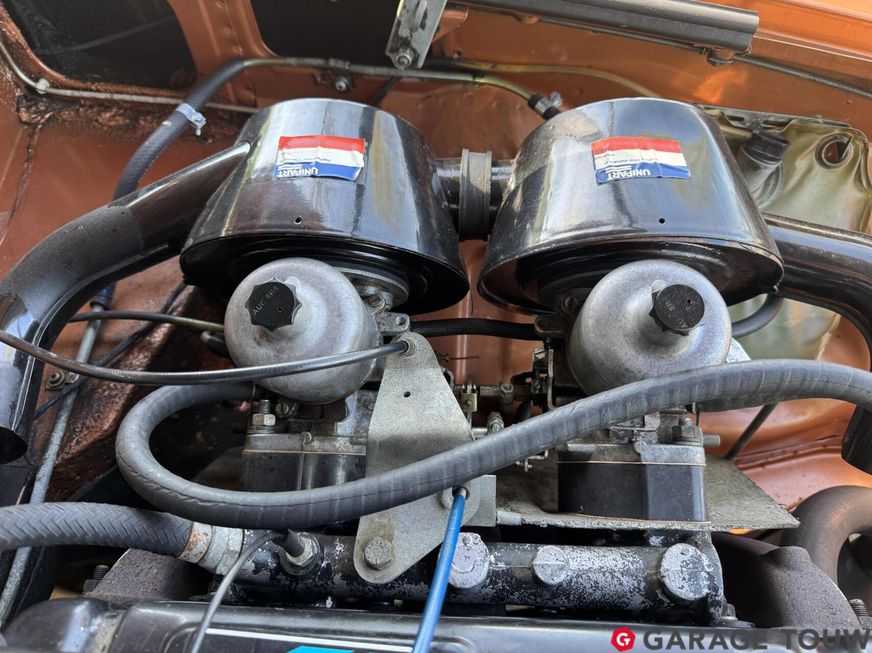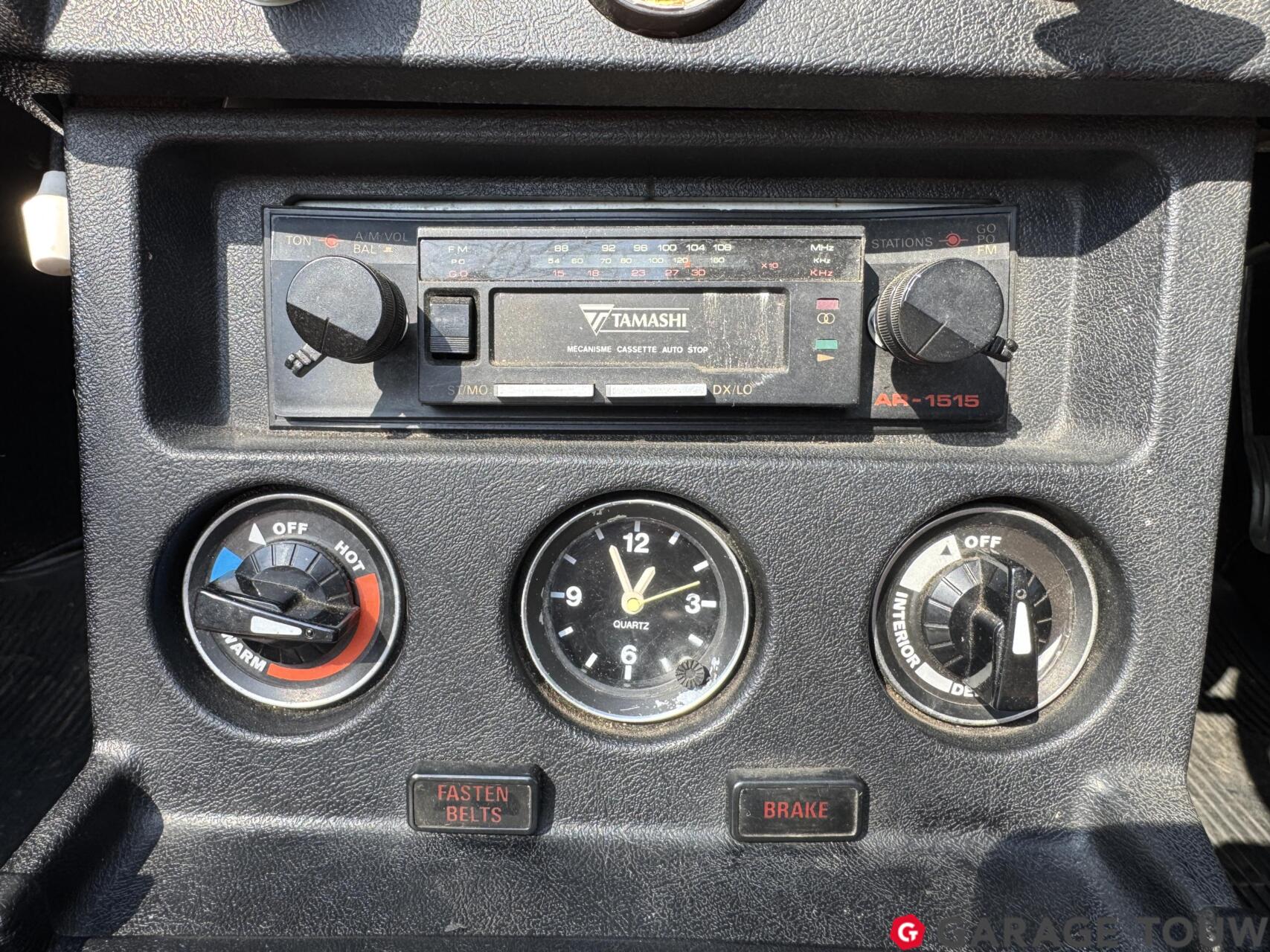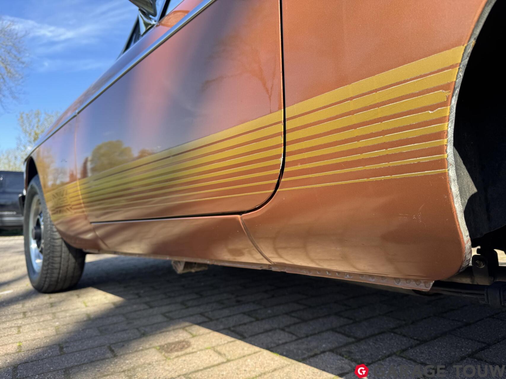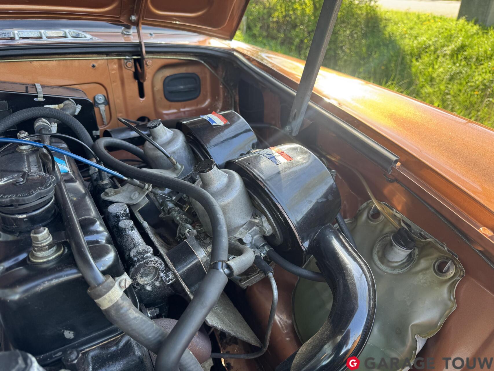 Een opvallend interieur door de oranje stoelbekleding met bruine strepen, zoals origineel geleverd. Ook het interieur bevindt zich in een originele staat. Dankzij het bouwjaar is hij van comfortabele gemakken voorzien, zoals een middenarmsteun, verwarming en een radio/cassettespeler. De vele tellers in het dashboard zijn onder meer een olietemperatuurmeter en een klokje. De gesynchroniseerde 4-versnellingsbak beschikt over een een overdrive, die zorgt voor een prettige ''5e versnelling''. De kofferruimte biedt plaats aan het reservewiel.