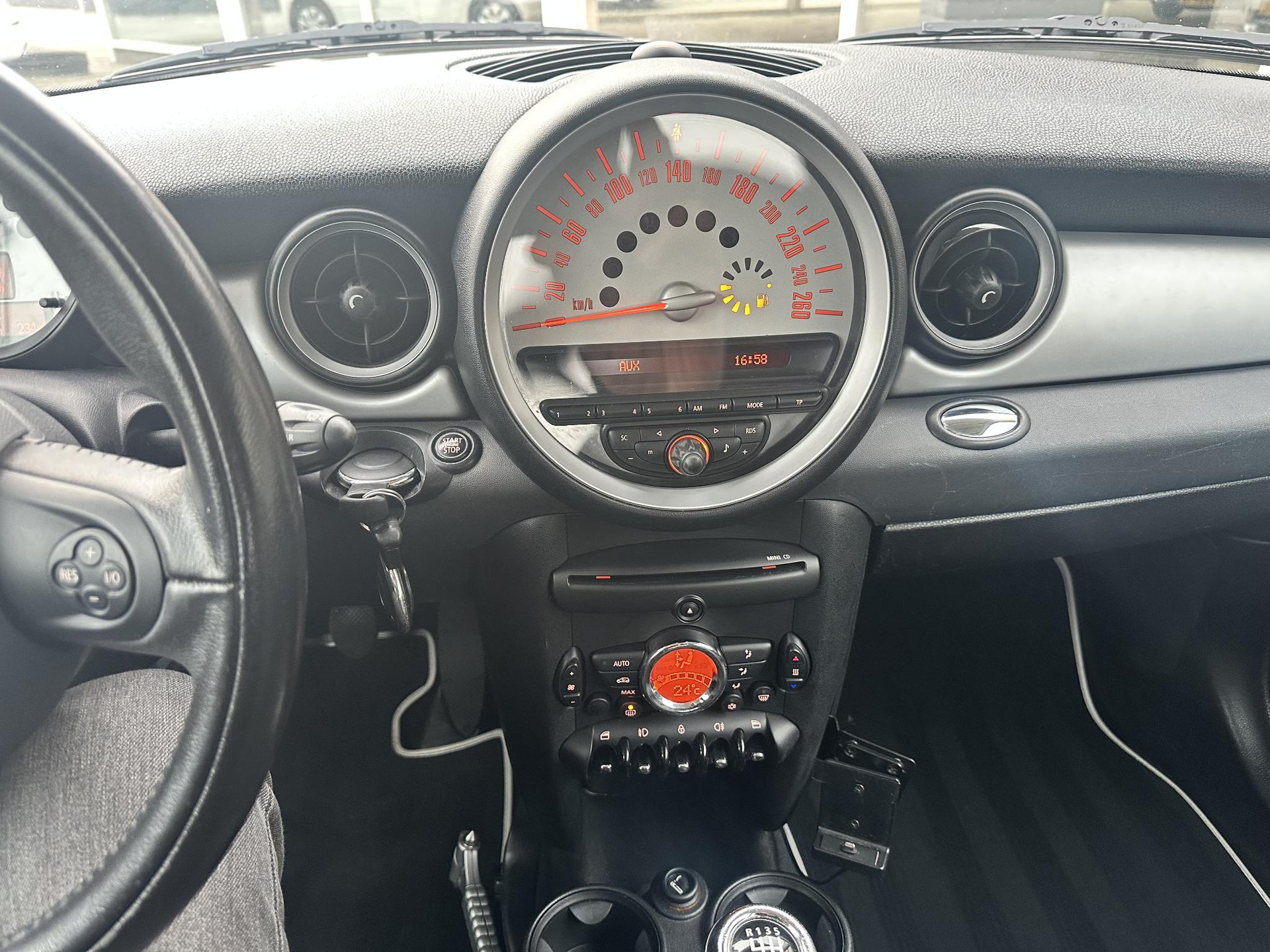 De cruise control houdt de snelheid constant. Dat is relaxt reizen! Het spreekt voor zich dat u in deze auto ook airconditioning aantreft. Deze Mini is voorzien van navigatiesysteem, buitentemperatuurmeter, lederen stuur, centrale deurvergrendeling met afstandsbediening en boordcomputer.
