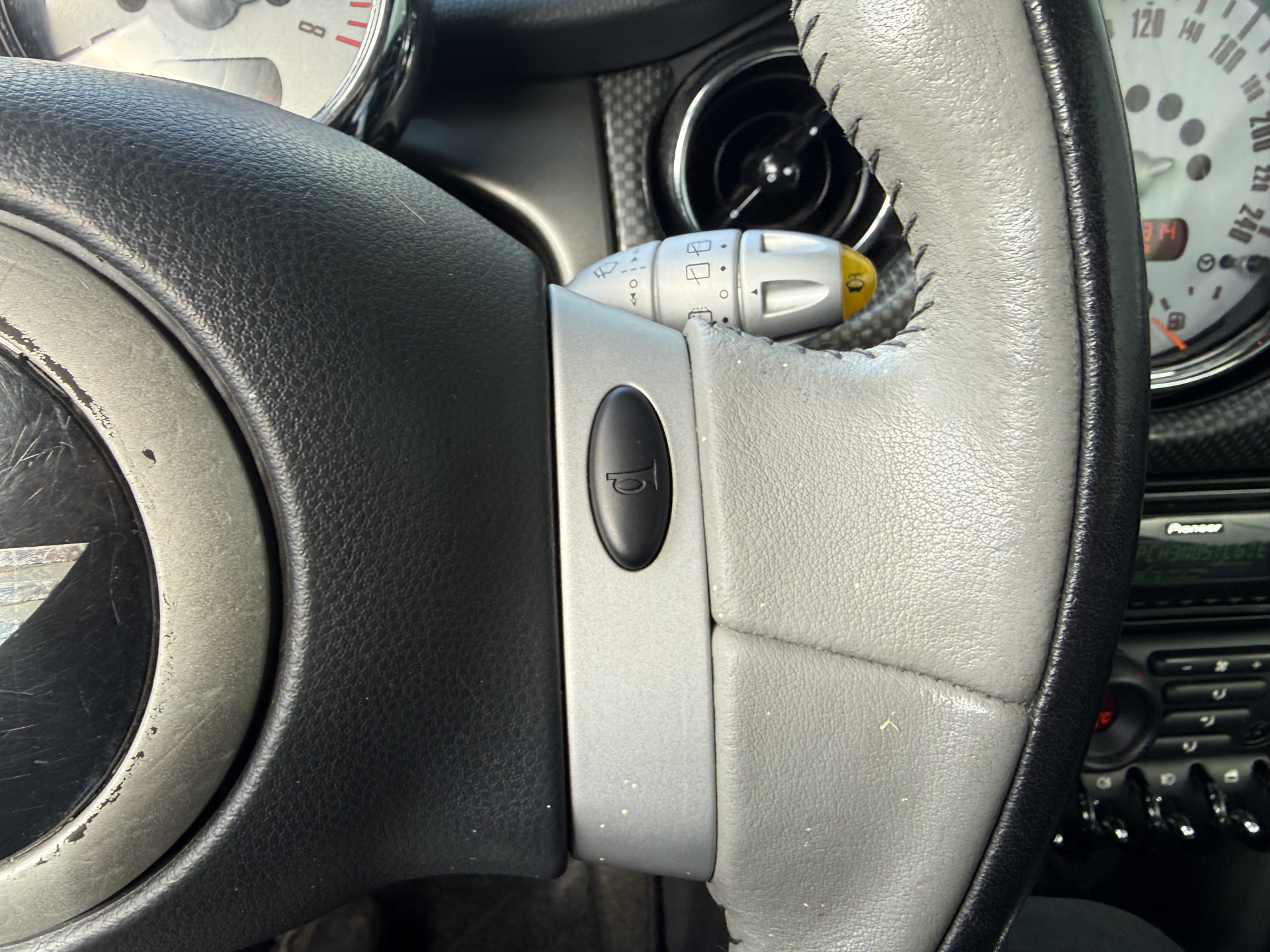 Zeer mooie, sportieve, praktische, pittige en complete Mini Cooper 1.6i 115pk Parklane met Chili pakket met o.a: Royal grey metallic lak, zwart lederen bekleding op loungestoelen, climate control airco, elektrische ramen voor, centrale deurvergrendeling op afstand, Chrome buitenspiegels en zilvergrijs dak, lederen stuurwiel, carbon inleg op dashboard, bluetooth radio met telefoon aansluiting, getint glas, mistlampen voor, in delen neerklapbare achterbank en originele 16-inch. lm-velgen spaken styling. Zeer mooi en voorzien van compleet nieuwe koppeling set met slechts 180.314km !