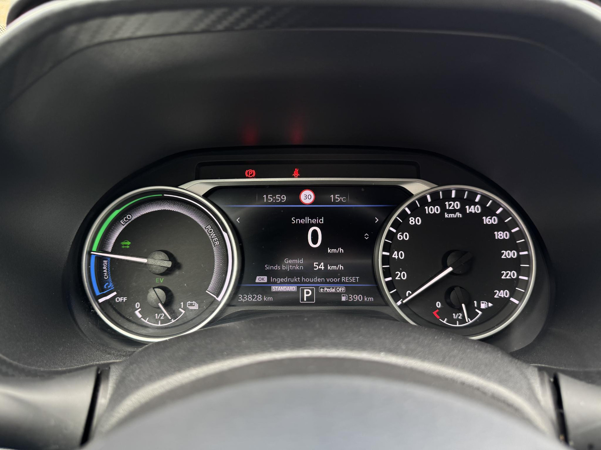 - Halve tank brandstof of volle accu