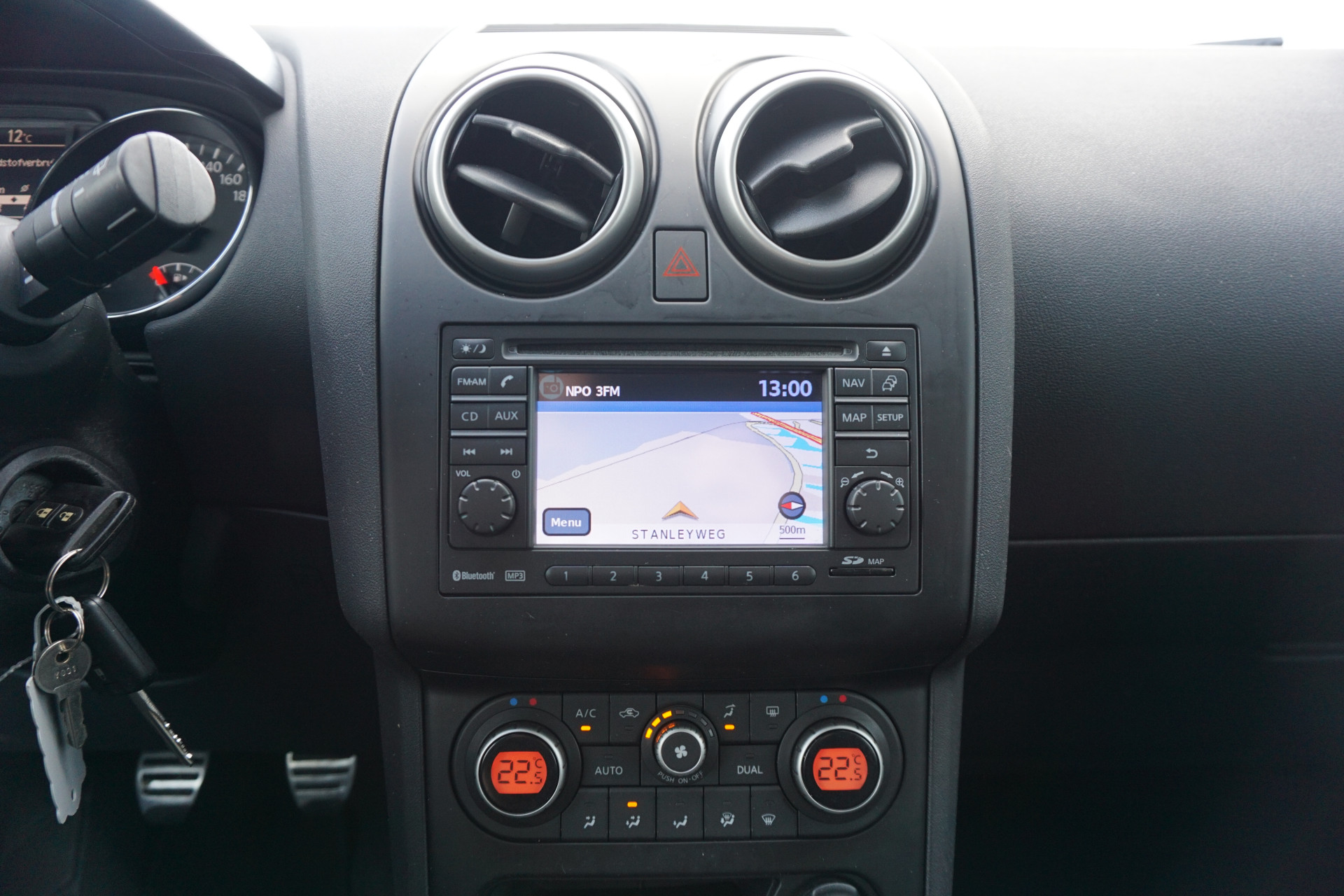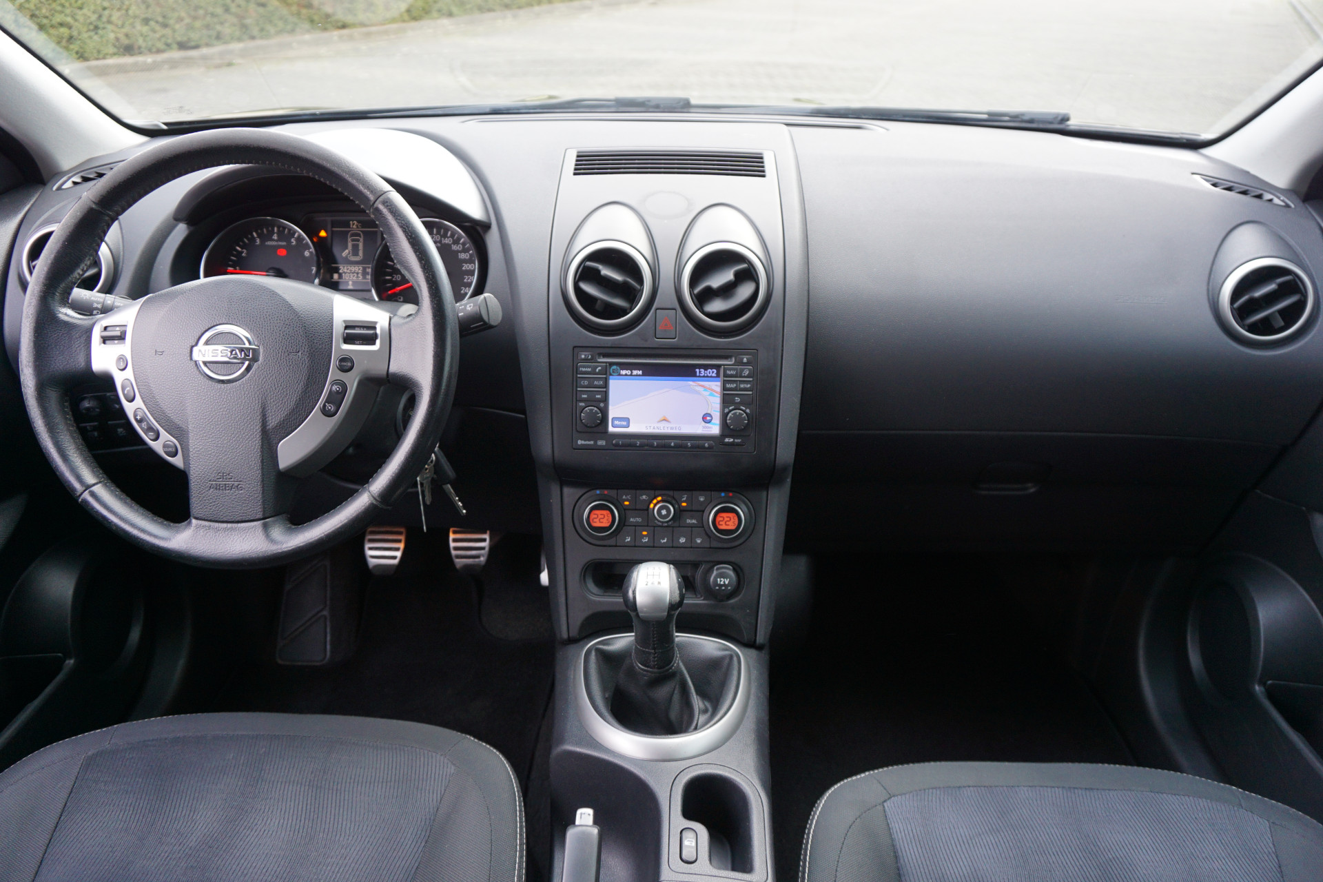 De achteruitrijcamera maakt inparkeren gemakkelijker dan ooit. Met de routebegeleiding van het full map navigatiesysteem kunt u zich volledig op het verkeer concentreren. De automatische airconditioning zorgt voor een prettige binnentemperatuur. Het audiosysteem laat zich gemakkelijk bedienen met de audiobediening op het stuurwiel. Het hoort bij een intelligente auto als deze dat hij zelf in staat is om zijn omgeving in de gaten te houden. Dat doet deze Nissan met een automatisch inschakelbare verlichting en een regensensor. Ook cruise control, automatisch dimmende binnenspiegel, lederen stuur, centrale deurvergrendeling met afstandsbediening, boordcomputer en lederen versnellingspook horen tot de voorzieningen op deze auto.