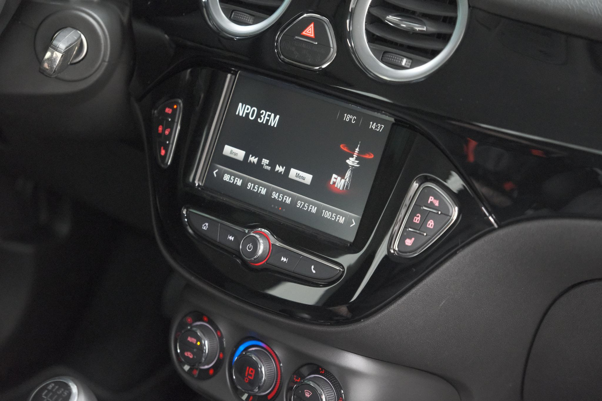 Deze Opel ADAM is voorzien van remote services. Via uw smartphone bedient u diverse functies ook op afstand en krijgt u informatie over de status van uw auto. Laat u onderweg niet afleiden, de bediening van het audiosysteem en ook het full map navigatiesysteem gaat met knoppen op het stuur. Natuurlijk is de audio-installatie voorzien van DAB-ontvangst. Met de electronic climate control selecteert u de gewenste temperatuur. Het systeem doet de rest. Parkeersensoren zijn een waardevolle toevoeging aan deze auto. De sensoren waarschuwen tijdens het parkeren en voorkomen schade aan de auto. Natuurlijk is een complete auto als deze ook voorzien van sensoren die de omgeving in de gaten houden. Deze Opel heeft niet alleen een automatisch inschakelbare verlichting aan boord, maar ook een regensensor. Wat u ook in deze auto kunt vinden zijn cruise control, automatisch dimmende binnenspiegel, centrale deurvergrendeling met afstandsbediening en boordcomputer.