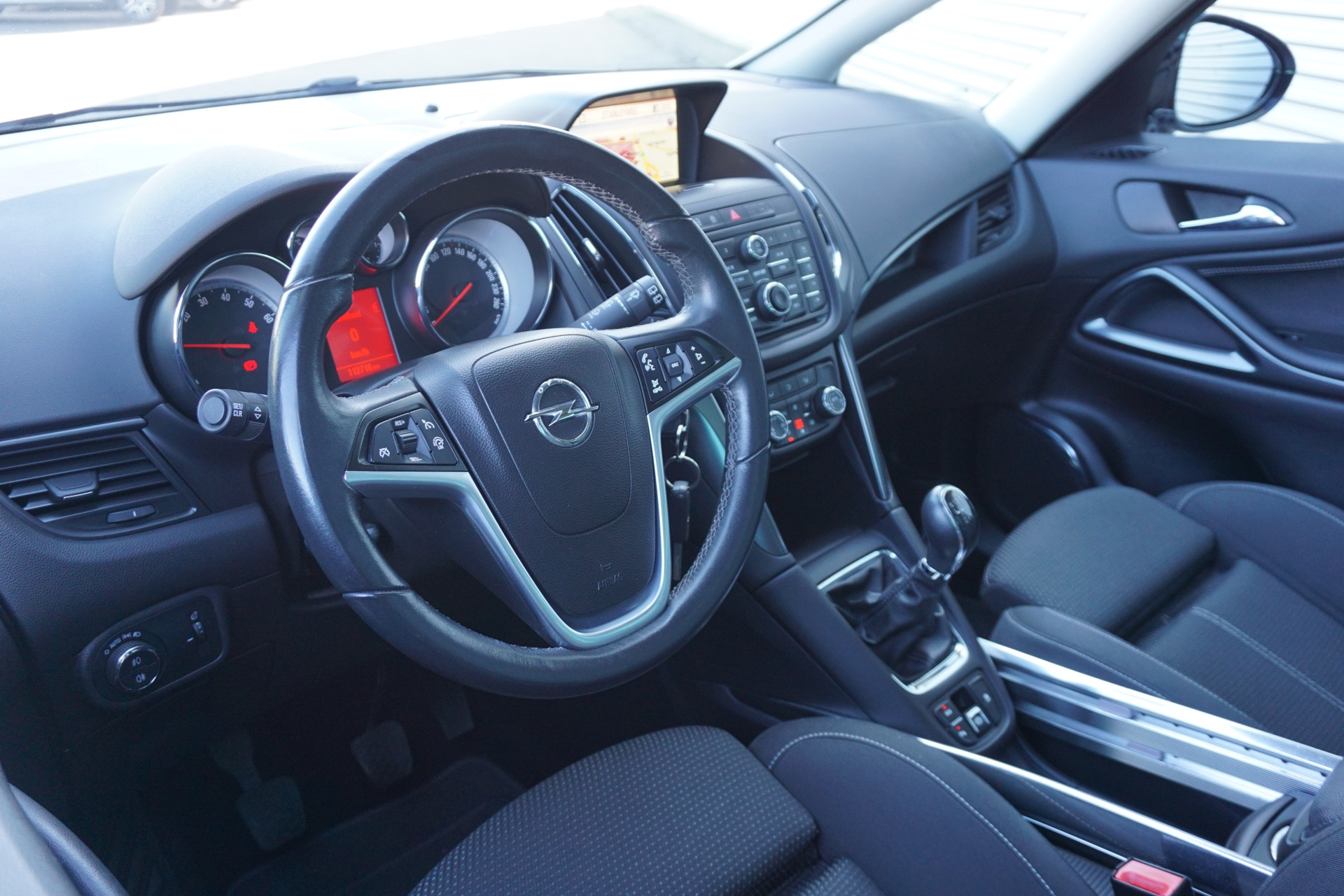 Laat u onderweg niet afleiden, de bediening van het audiosysteem en ook het full map navigatiesysteem gaat met knoppen op het stuur. Boem is ho? Niet bij deze Opel Zafira Tourer. De piepjes van de parkeersensoren waarschuwen u op tijd voor obstakels. De elektronische systemen in deze Opel helpen u actief om comfortabeler te rijden. Een automatisch inschakelbare verlichting en een regensensor houden de omstandigheden onderweg in de gaten. De voordelen van de aanwezige cruise control hoeven we niet uit te leggen. Een mooie, constante snelheid - niet te snel, niet te langzaam. Precies goed. Met de ingebouwde airconditioning zit u altijd ontspannen achter het stuur. Deze auto is voorzien van automatisch dimmende binnenspiegel, lederen stuur, centrale deurvergrendeling met afstandsbediening, bagage afdekhoes, boordcomputer en lederen versnellingspook.