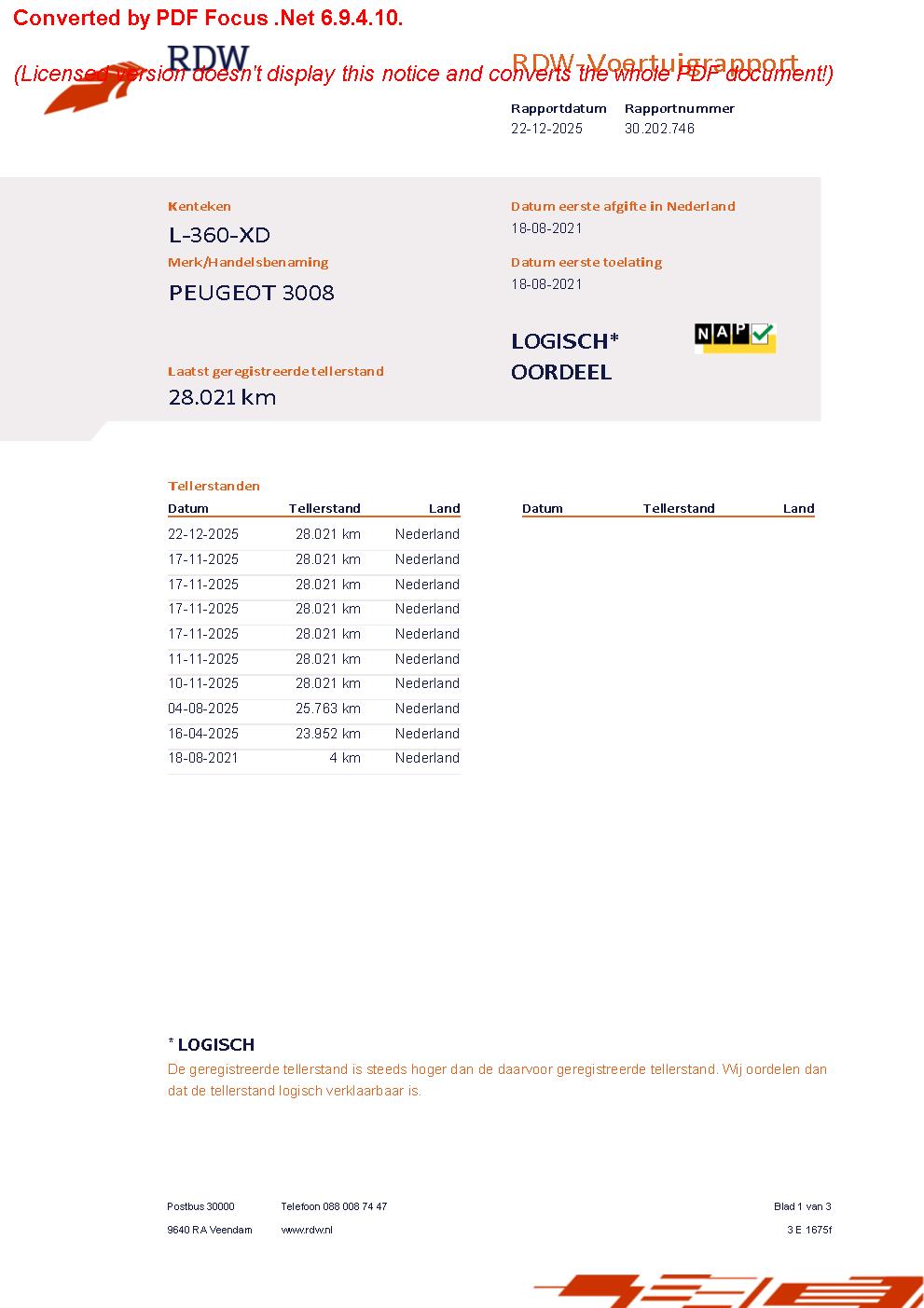 Onderhoudsboekjes: Aanwezig (dealer onderhouden)RDW Tellerrapport: https://voertuigrapportdownloaden.rdw.nl/kenteken/L360XD