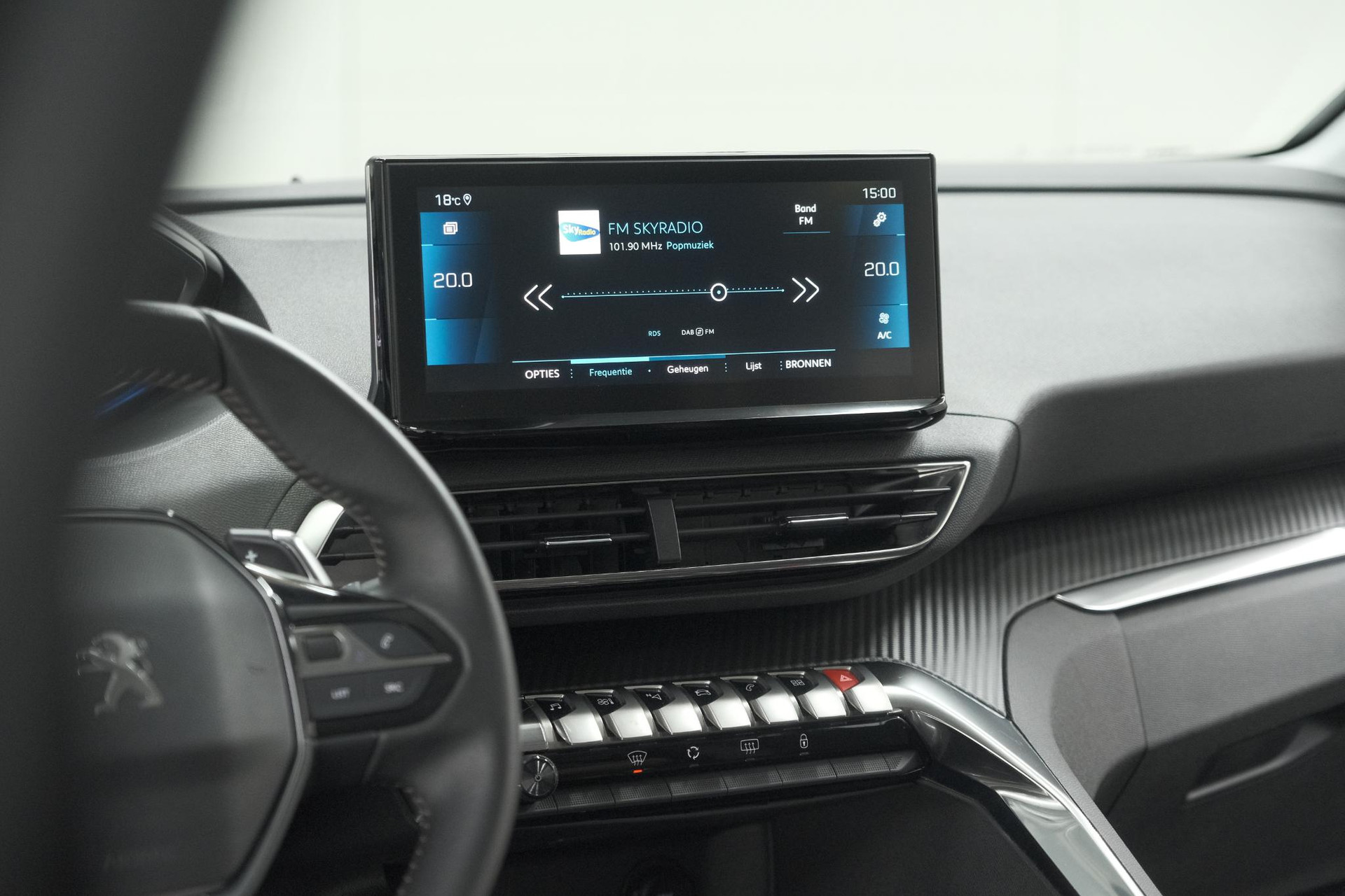 Wegwijs in elke wijk, stad of reisbestemming? Daarvoor zorgt het full map navigatiesysteem! De automatische airconditioning zorgt onder alle omstandigheden voor een prettige temperatuur. Volume aanpassen, andere radiozender? U bedient het audiosysteem veilig en handig met de functies op het stuur. Parkeersensoren ondersteunen u tijdens het in- en uitparkeren. Om de veiligheid onderweg te verhogen, heeft deze Peugeot zowel een automatisch inschakelbare verlichting als een regensensor aan boord, zodat hij zelf de verlichting en de ruitenwissers kan inschakelen. Deze auto is voorzien van cruise control, automatisch dimmende binnenspiegel, lederen stuur en centrale deurvergrendeling met afstandsbediening.