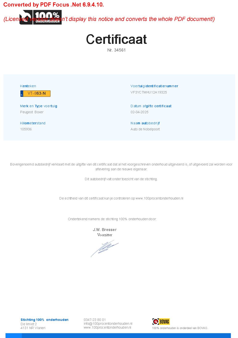 BOVAG Afleverbeurt: JaBeschikbare afleverpakketten: