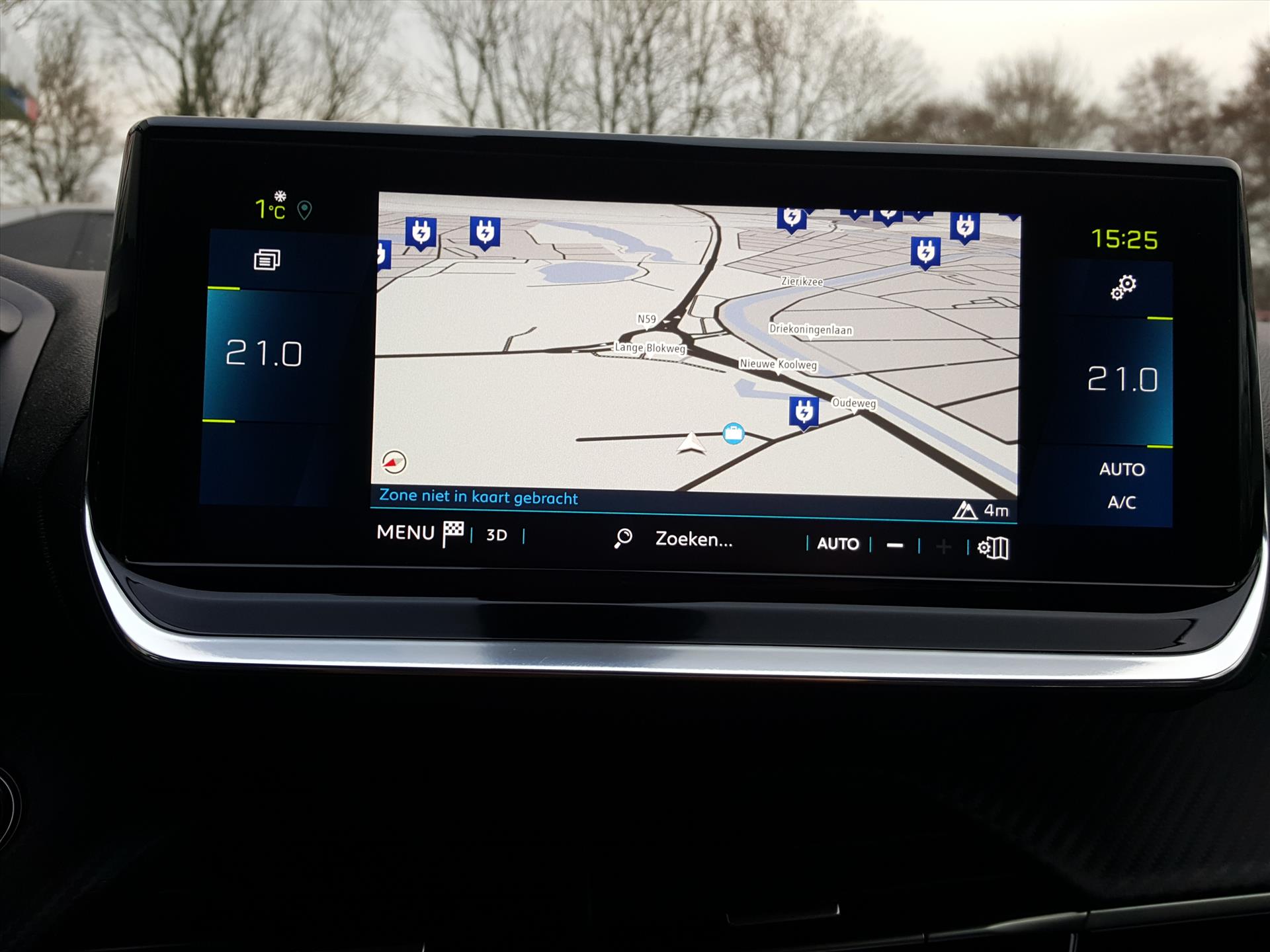 De nieuwste veiligheidssystemen komen in deze PEUGEOT e-208 samen. In het instrumentarium laat de verkeersborddetectie de actuele verkeersborden zien. Het systeem voor vermoeidheidsherkenning neemt het waar als uw concentratie verslapt en geeft u dan een waarschuwing. Gaat u buiten de lijnen van uw rijstrook zonder richting aan te geven, dan waarschuwt de aanwezige lane assist direct.