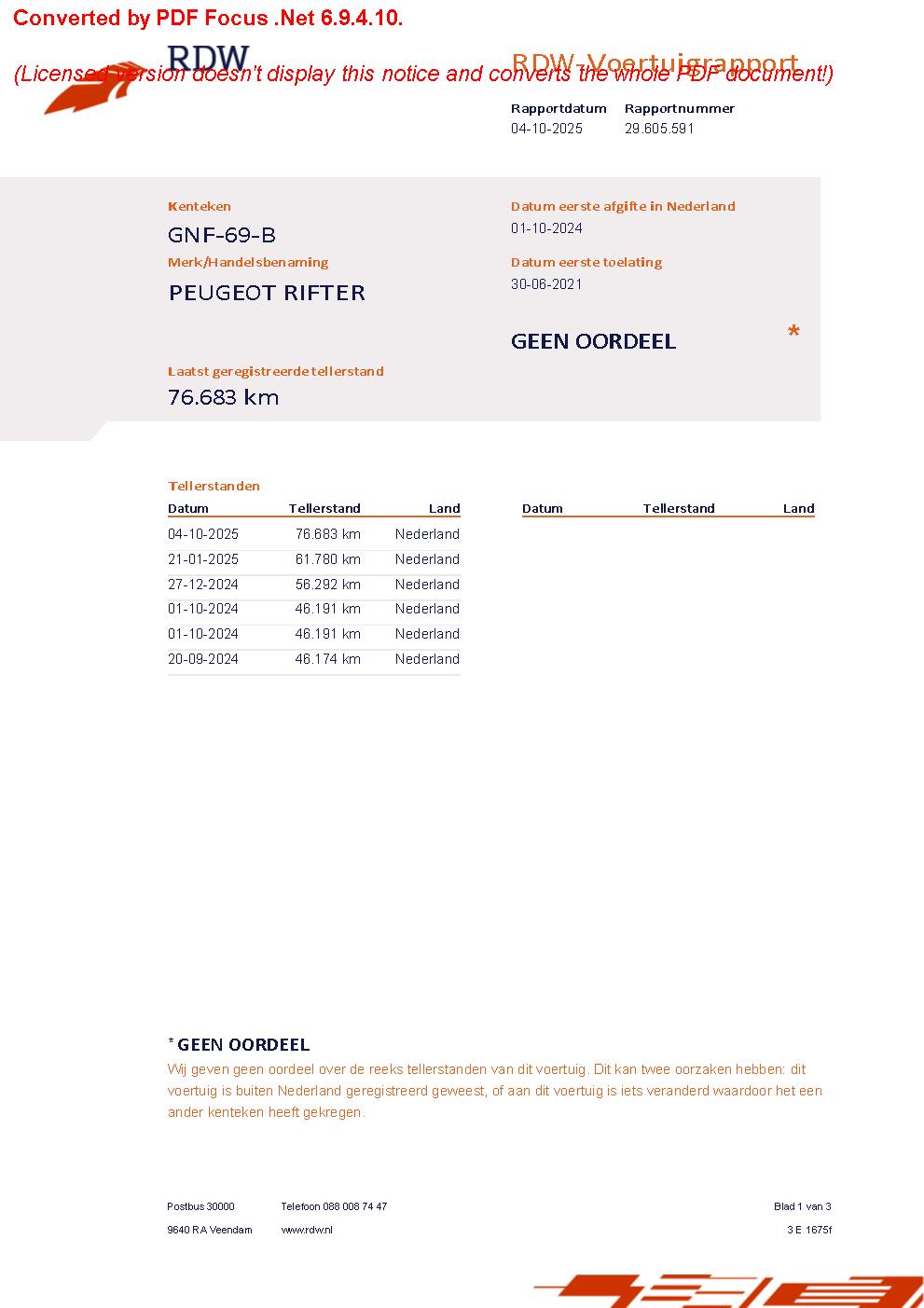 Onderhoudsboekjes: Aanwezig (dealer onderhouden)RDW Tellerrapport: https://voertuigrapportdownloaden.rdw.nl/kenteken/GNF69B