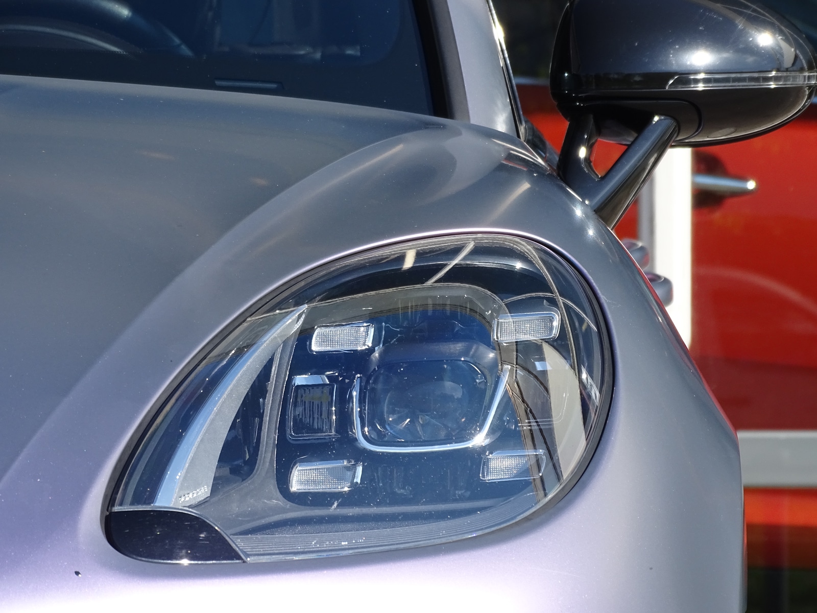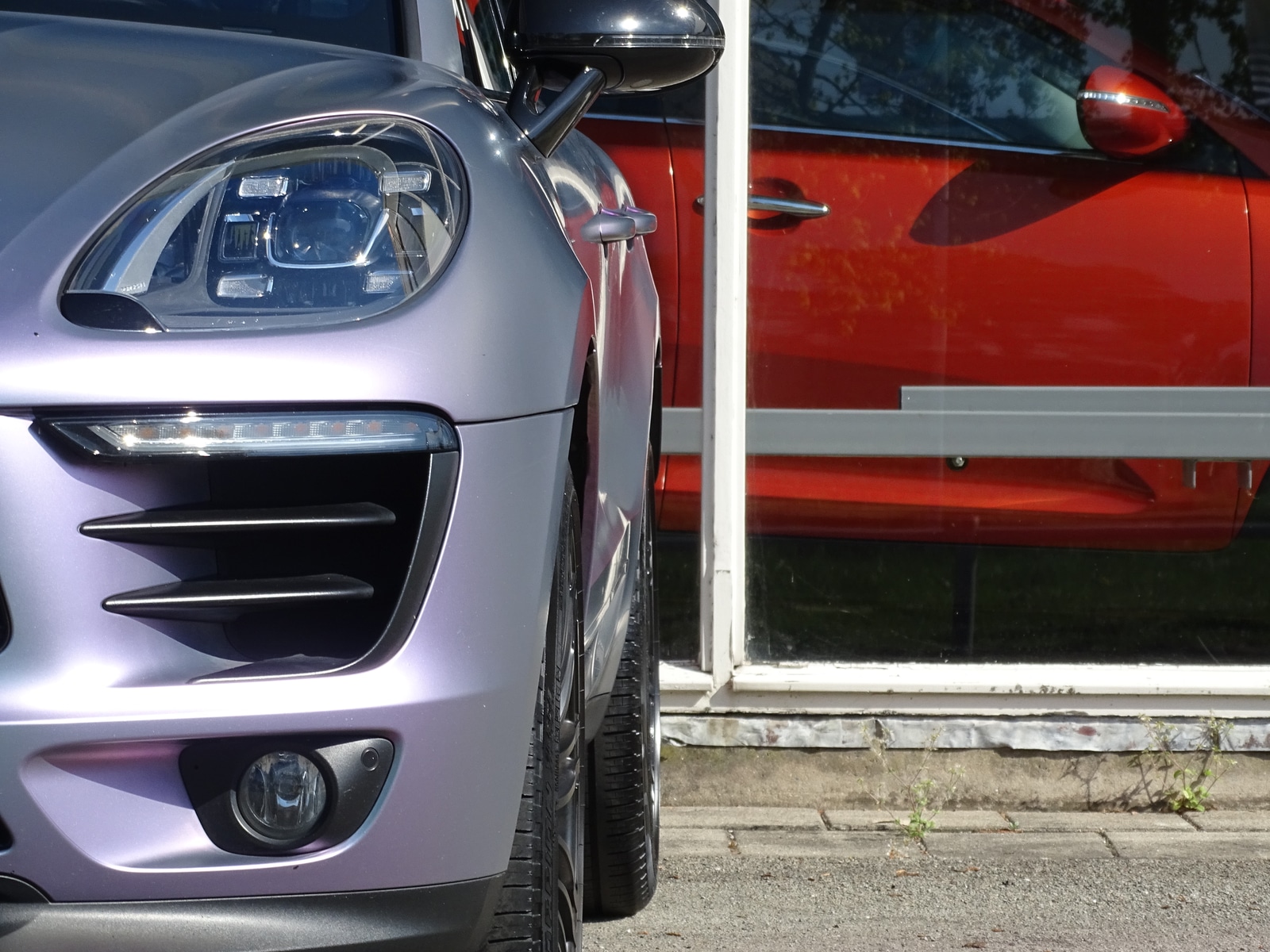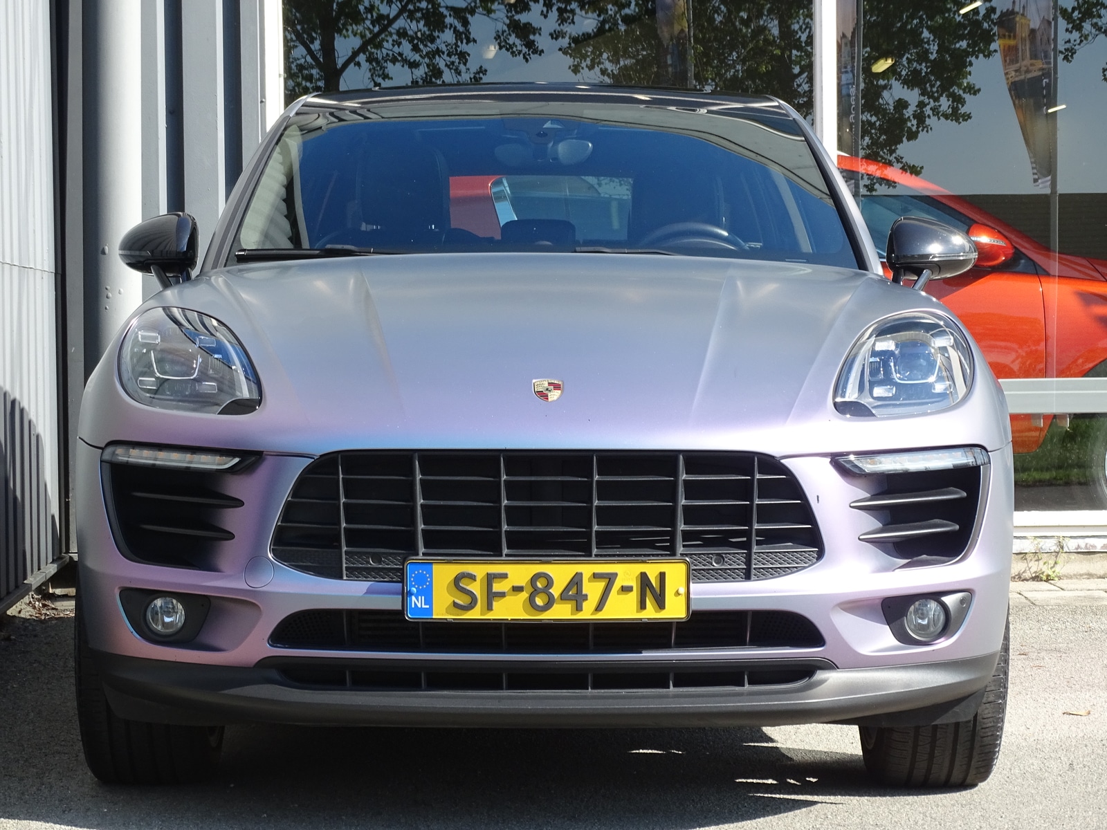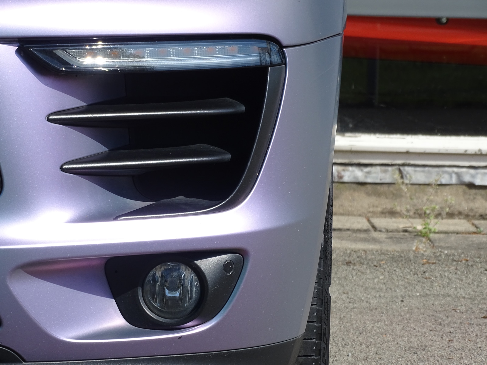 Deze auto is voorzien van een mat paarse wrap. De lakkleur onder deze wrap is Lava Grijs