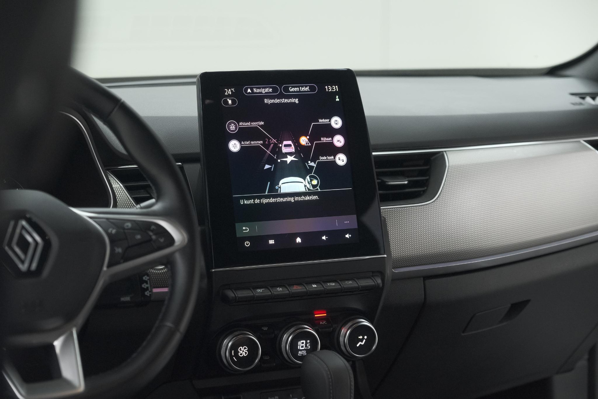 Zoals u mag verwachten van deze Renault Arkana is hij uitgerust met een reeks aan actieve veiligheidssystemen. Verkeersborddetectie herkent tijdelijke en permanente verkeersborden langs en boven de weg. Met het Lane-keeping systeem gaat u nooit onbedoeld over de streep. Veel aanrijdingen bestaan uit kop-staartbotsingen. De forward collision warning reduceert dat risico aanzienlijk. Bovenop deze veiligheidsfeatures heeft deze Renault bovendien autonoom remsysteem en bandenspanningcontrolesysteem.