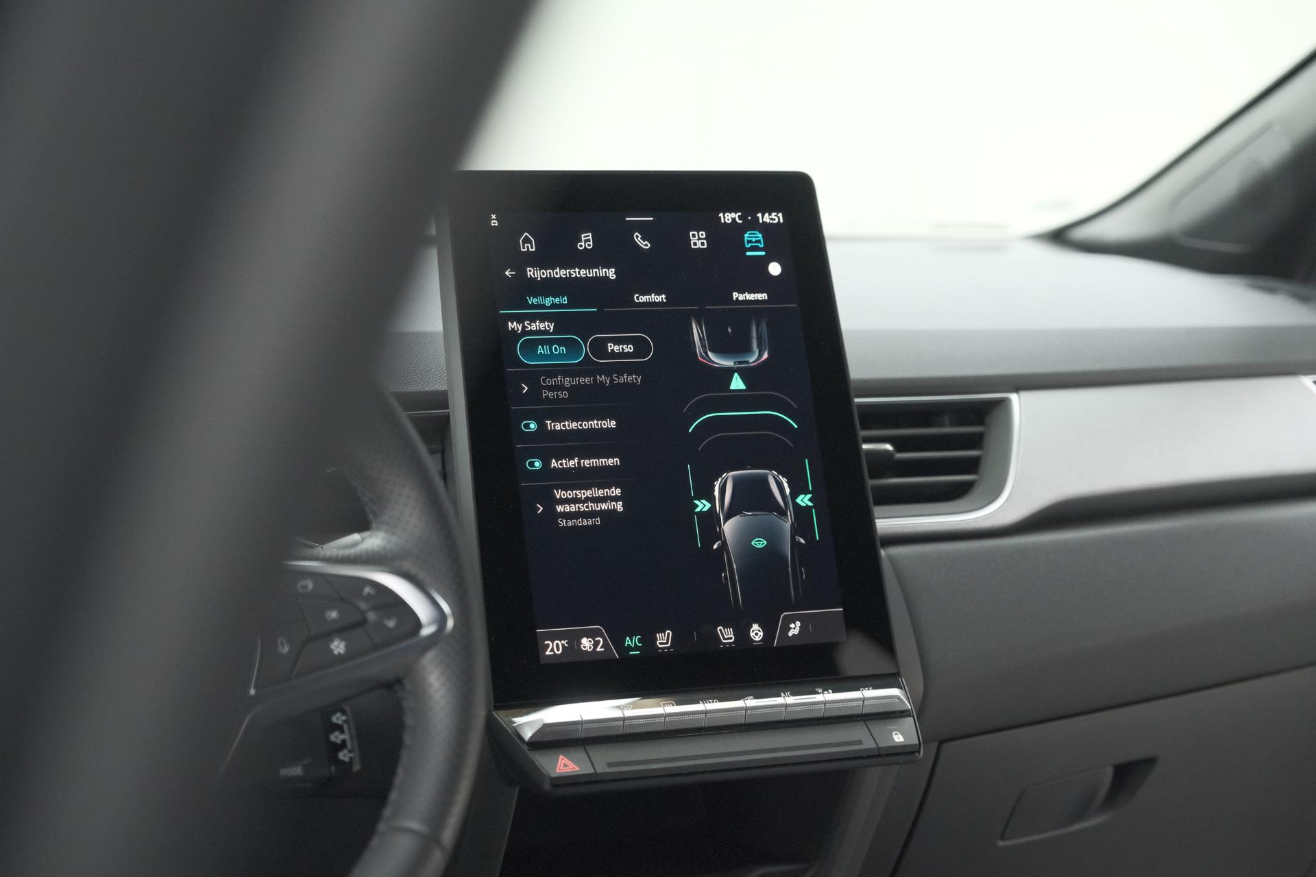 Soepel inparkeren gaat gemakkelijker dan u verwacht dankzij de achteruitrijcamera. Met adaptive cruise control houdt de auto zelfstandig afstand tot uw voorligger. Een veiligheidsverhogende optie waarmee u comfortabel onderweg bent. Spraaksturing betekent dat u verschillende functies met uw stem kunt bedienen. Ook is de auto voorzien van electronic climate control. De draadloze oplaadmogelijkheid voor telefoons voldoet aan de universele Qi-standaard. Elke geschikte smartphone is onderweg zonder snoeren en stekkers op te laden. Met DAB ontvangst, regensensor, keyless entry, automatisch dimmende binnenspiegel en boordcomputer is deze Renault helemaal compleet.