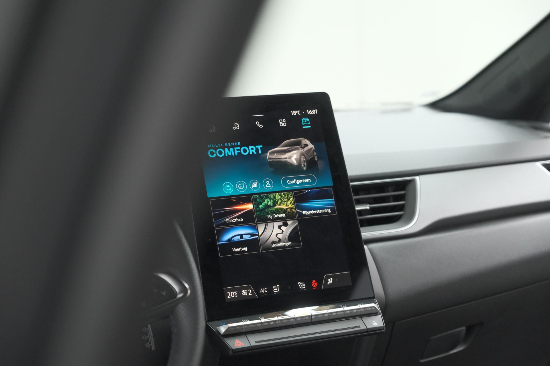 Alles vrij achter? De achteruitrijcamera laat het meteen zien. Als u de adaptive cruise control inschakelt, regelt de auto zelf de snelheid en de afstand tot de auto voor u. Gemak dient de mens. Dankzij de spraaksturing bedient u de belangrijkste functie met uw stem. Vanaf elke plek contact maken met deze auto: dat kan met behulp van remote services, die u simpel activeert met uw smartphone. Met het navigatiesysteem kiest u de snelste route naar uw eindbestemming. U bent in deze Renault ook voorzien van electronic climate control, draadloos opladen, DAB ontvangst, regensensor, keyless entry en automatisch dimmende binnenspiegel.