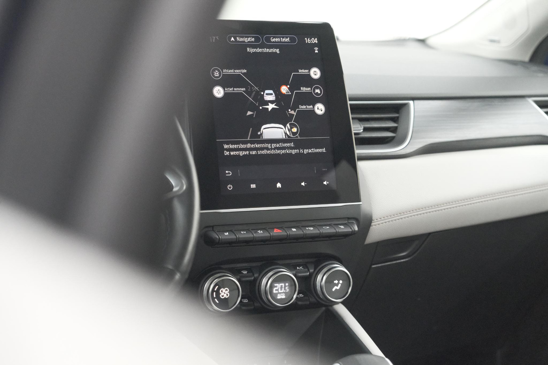 Pragmatisch en veilig als deze auto is, beschikt hij over diverse veiligheidssystemen. Bij de veiligheidssystemen van deze Renault hoort ook de verkeersbord-detectie. Die leest tijdens het rijden als het ware met u mee en attendeert u op de significante verkeersborden langs en boven de weg. Voorzien van het Lane-keeping systeem. Ofwel: blijf automatisch in je baan. Ook als uw aandacht even verslapt, blijft de forward collision warning bij de wekker. Dreigt er een botsing met een voor- of tegenligger, dan waarschuwt het systeem direct. De veiligheid van deze auto wordt verder verhoogd door dodehoekdetectie, hill hold functie, brake assist en bandenspanningcontrolesysteem.