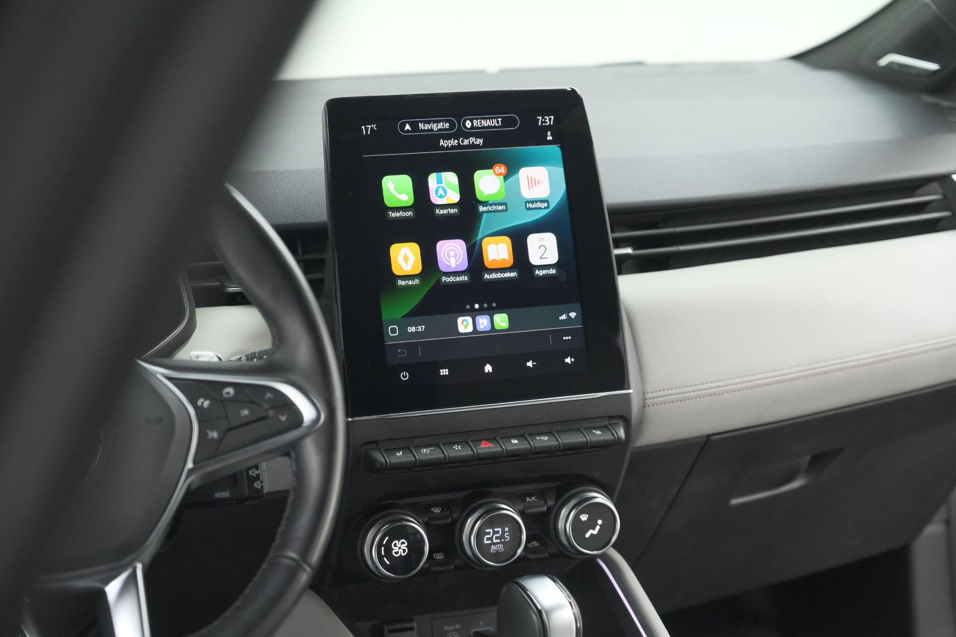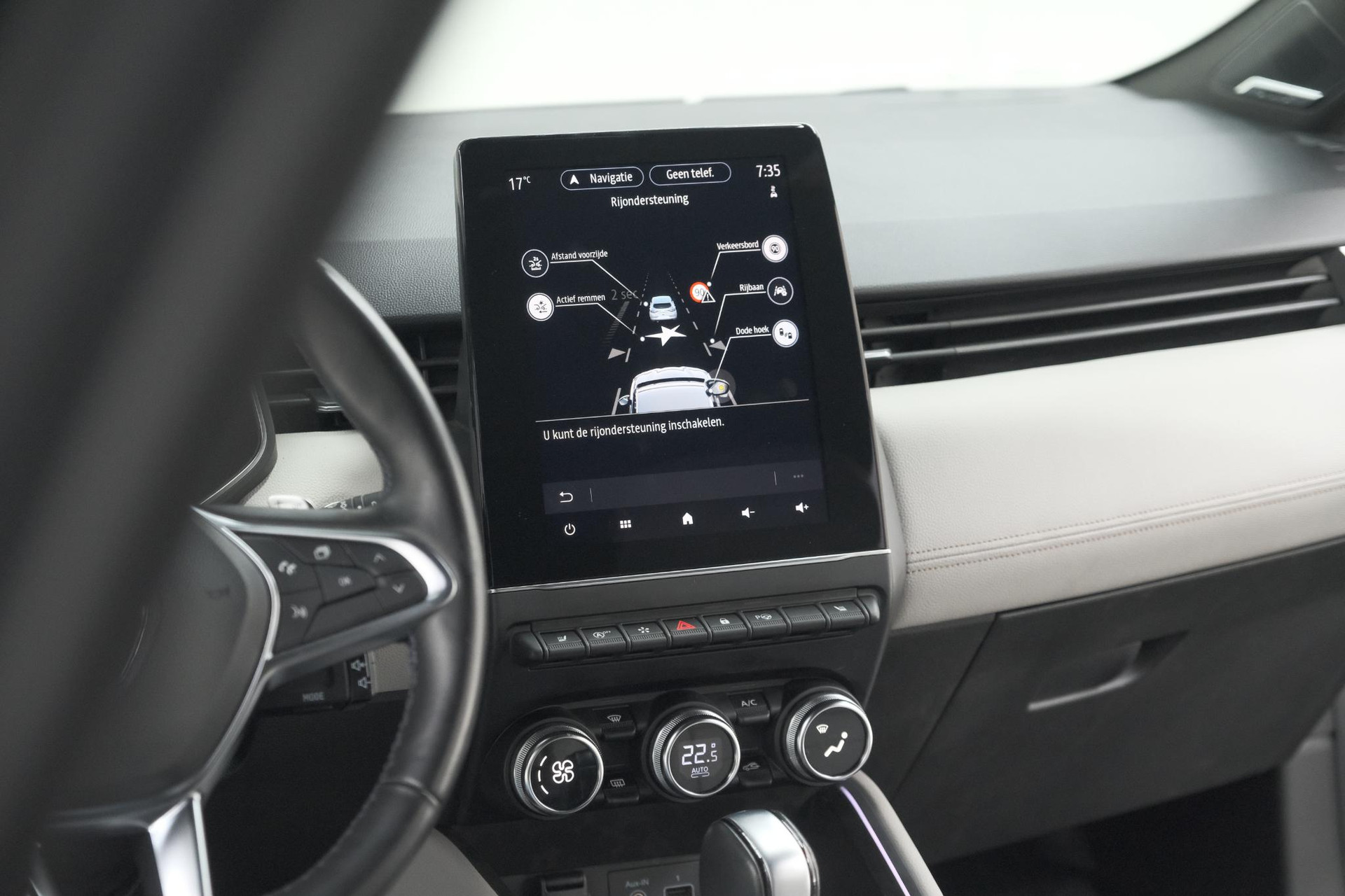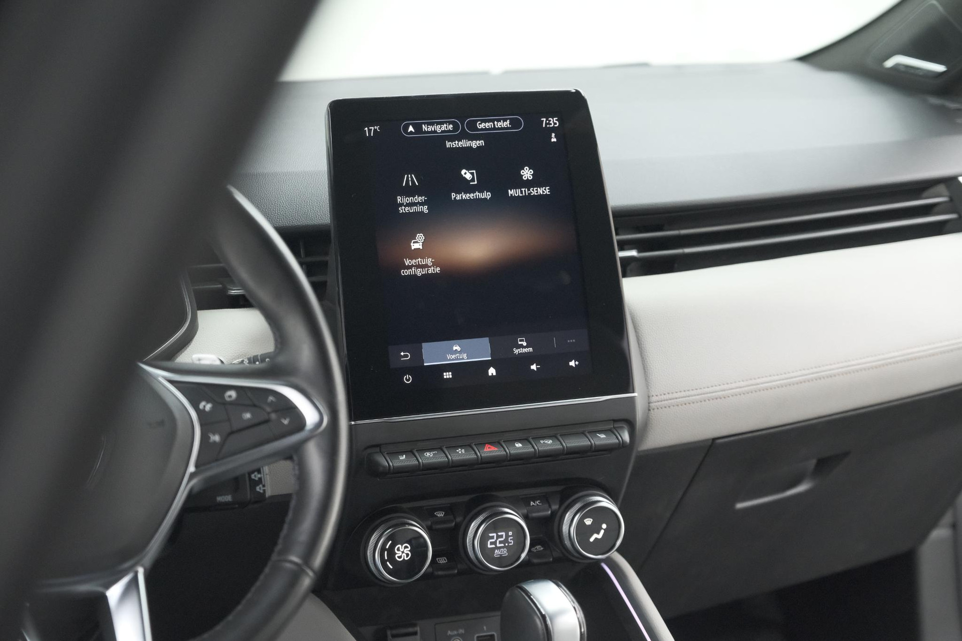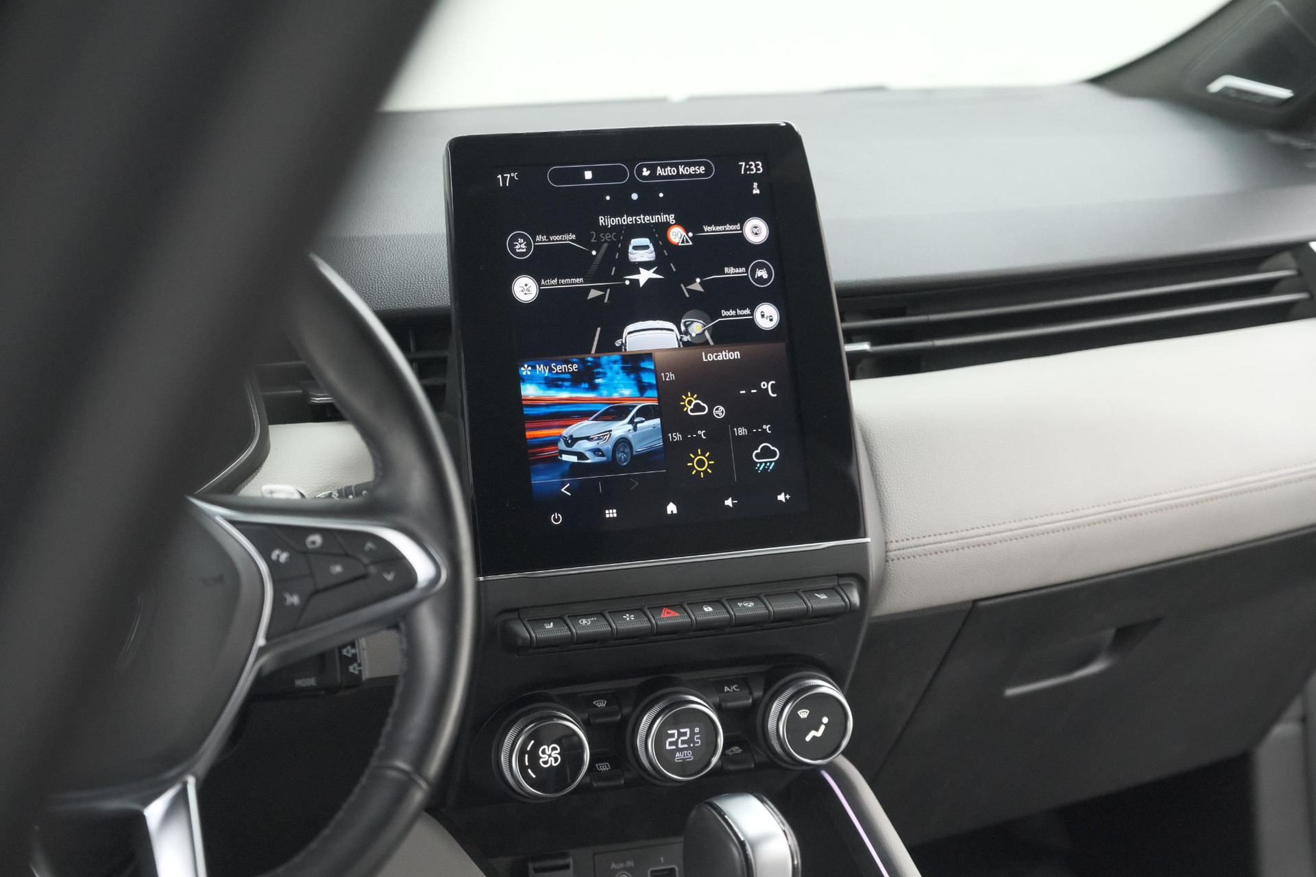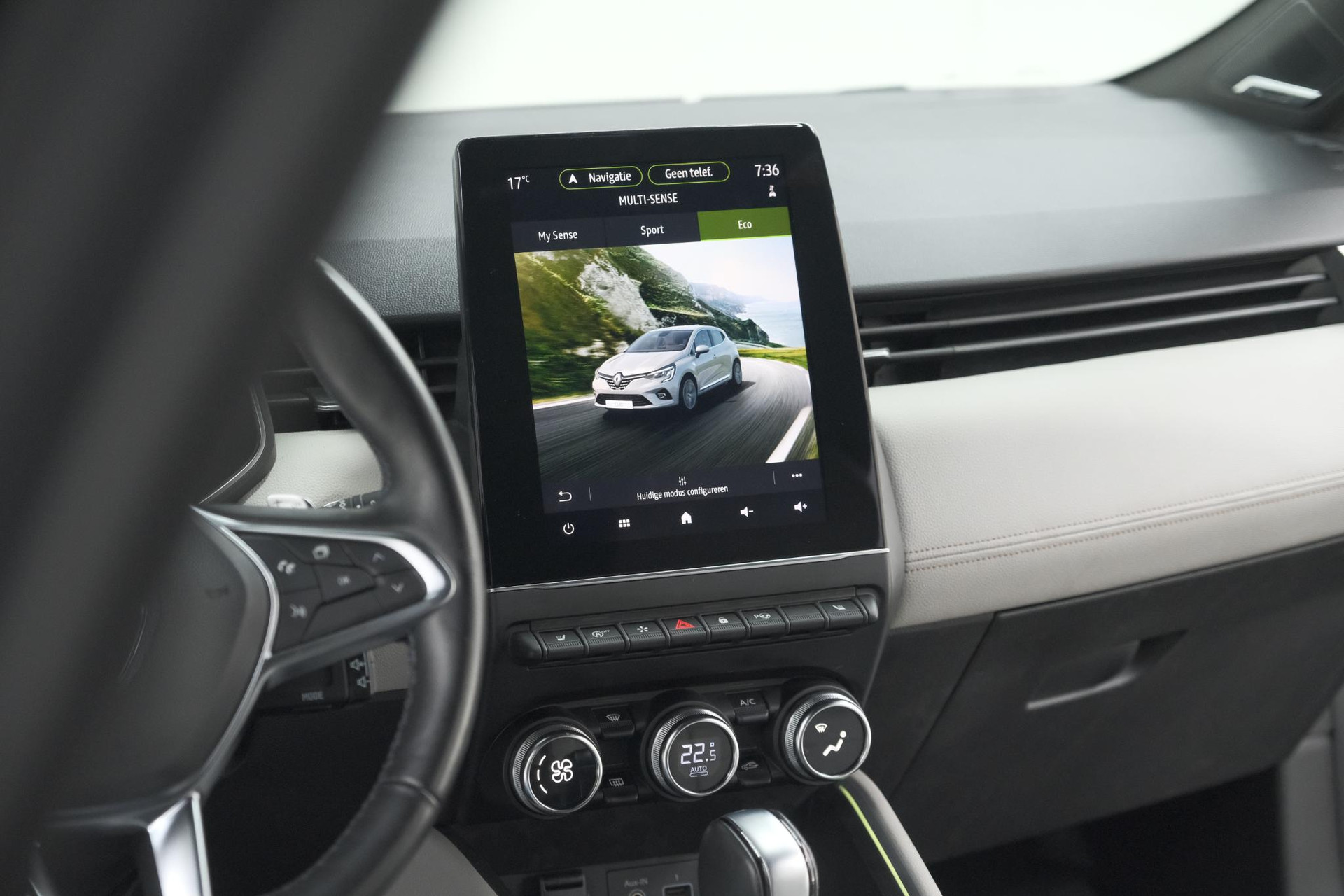 Kommaar-kommaar-kommaar, aldus de achteruitrijcamera. Iedere centimeter vrije ruimte komt haarscherp in beeld. Schadevrij inparkeren maar! Laag is laag en hoog is hoog: het Bose audiosysteem biedt een ongeëvenaarde muziekbeleving onderweg. Voorzien van een draadloze oplaadmogelijkheid voor telefoons om onderweg de accu van de smartphone bij te laden. Het spreekt voor zich dat een auto als deze ook van automatische airconditioning is voorzien. Het drukke verkeer eist onderweg al uw aandacht op. Daarom is het goed dat deze Renault is voorzien van diverse systemen die u assisteren tijdens de rit. Een automatisch inschakelbare verlichting neemt het waar als het donker wordt of gaat schemeren, en schakelt dan automatisch de verlichting in. Op dezelfde manier "ziet" de regensensor de eerste spatjes regen en schakelt dan de ruitenwissers in, en als het harder gaat regenen zet hij de ruitenwissers ook in een snellere stand. De uitrusting van deze auto is met Bose-audioinstallatie, full map navigatiesysteem, DAB ontvangst, cruise control, keyless entry en automatisch dimmende binnenspiegel behoorlijk compleet.