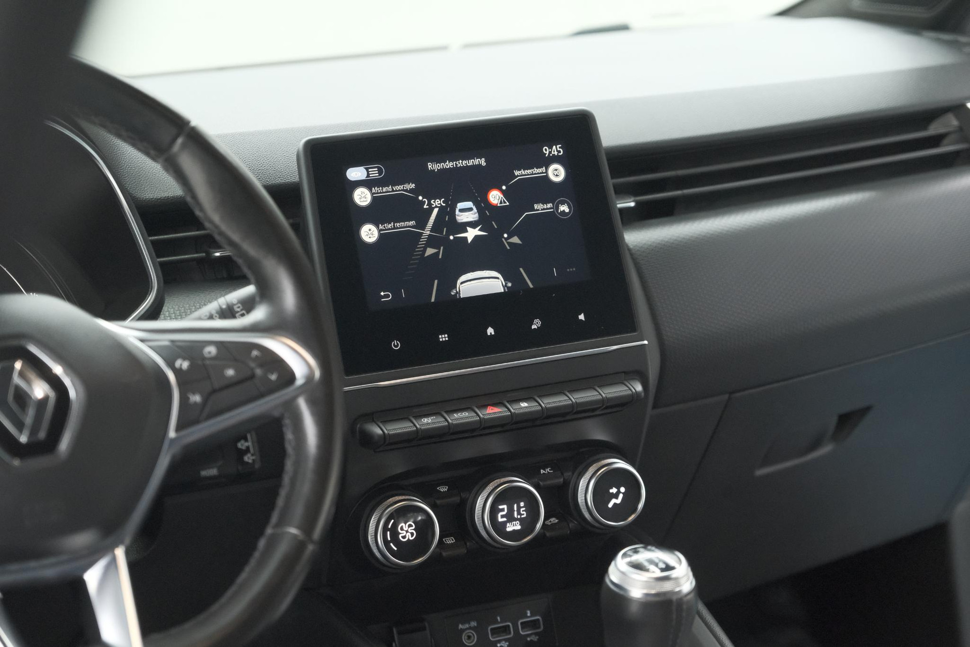 Zoals u mag verwachten van deze Renault Clio is hij uitgerust met een reeks aan actieve veiligheidssystemen. Onderweg fungeert de verkeersbord-detectie als het ware als uw bijrijder en attendeert u op de verkeersborden langs de weg. Het Lane-keeping systeem zorgt dat u mooi binnen de lijntjes blijft. Ongemerkt buiten de rijstrook komen is er niet meer bij. In deze Renault vinden we verder een hill hold functie, autonoom remsysteem en bandenspanningcontrolesysteem.