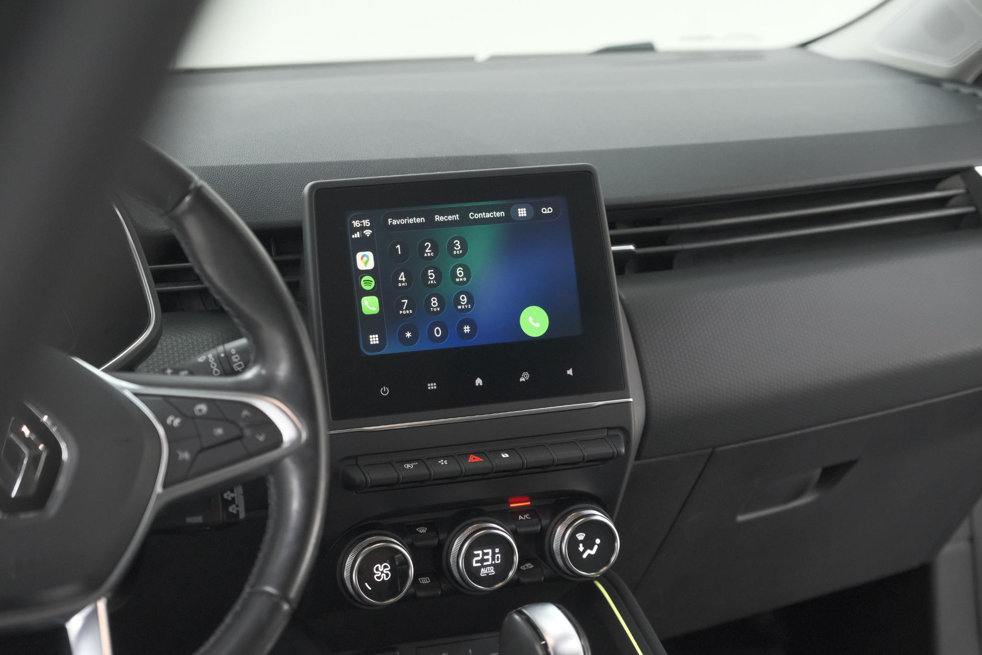 Hoeveel ruimte heeft u nog bij het inparkeren? De achteruitrijcamera brengt helder in beeld wat zich achter de auto bevindt en geeft een geluidssignaal. Met de routebegeleiding van het full map navigatiesysteem kunt u zich volledig op het verkeer concentreren. Bij de luxe van deze auto hoort ook automatische airconditioning. Het stuur van deze auto heeft uiteenlopende functies. Ook om het geluid te regelen. De audiobediening op het stuur draagt daarom actief bij aan een veilige rit. De DAB-ontvanger zorgt voor een ruime keuze uit digitale radiozenders en een kristalheldere geluidsweergave. Deze Renault is voorzien van regensensor, cruise control, keyless entry en lederen stuur.