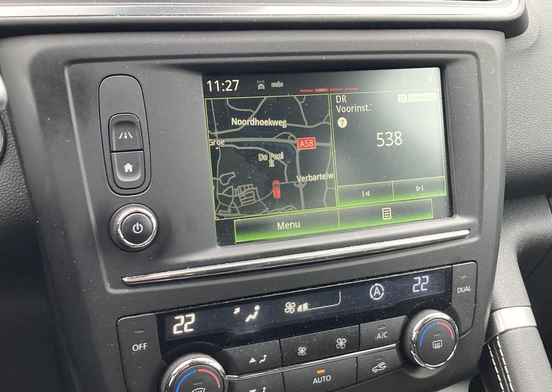 Het is een nette en comfortabele auto, deze Renault Kadjar, hij heeft 46748 kilometer gelopen. Met zijn benzinemotor en handgeschakelde zesversnellingsbak is dit een prima auto voor nog vele kilometers. Bij de zeer complete uitrusting van deze auto behoren ook 17 inch lichtmetalen velgen, LED-dagrijverlichting, in hoogte verstelbare passagiersstoel, donker getint glas achter, LED-achterlichten en verstelbare lendensteunen.