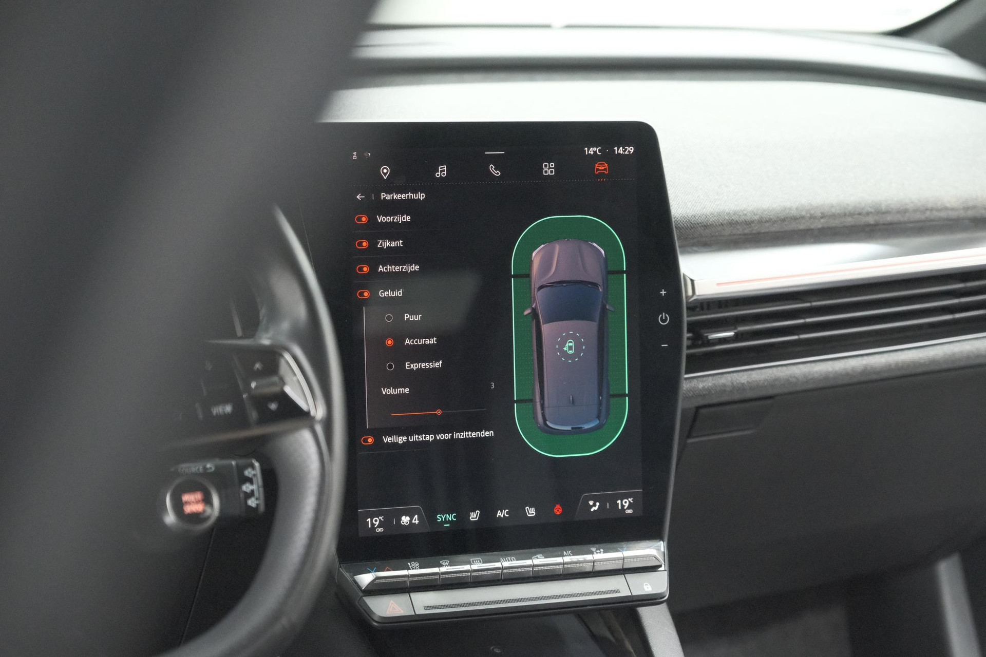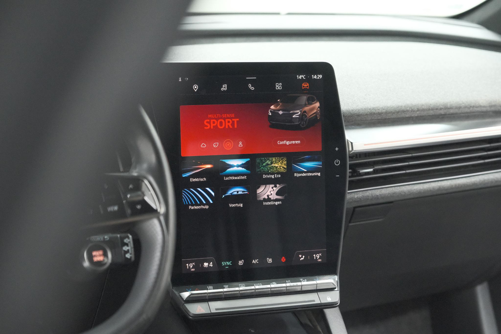 De Renault Megane E-Tech is uw trouwe partner onderweg, want hij houdt continu voor u de situatie op en om de weg in de gaten. Volautomatische veiligheidssystemen kunnen daarbij ingrijpen om u voor gevaarlijke situaties te behoeden. In het instrumentarium ziet u tijdens de rit ook de belangrijkste verkeersborden aangegeven, die de auto automatisch voor u leest. Onbedoeld buiten de rijstrook raken wordt voorkomen door het Lane-keeping systeem. Actieve dodehoekdetectie waarschuwt als een ander voertuig zich in uw dode hoek bevindt. Dit verkleint de kans op een aanrijding. Bovenop deze veiligheidsfeatures heeft deze Renault bovendien forward collision warning system, hill hold functie, brake assist, vermoeidheidsherkenning en bandenspanningcontrolesysteem.