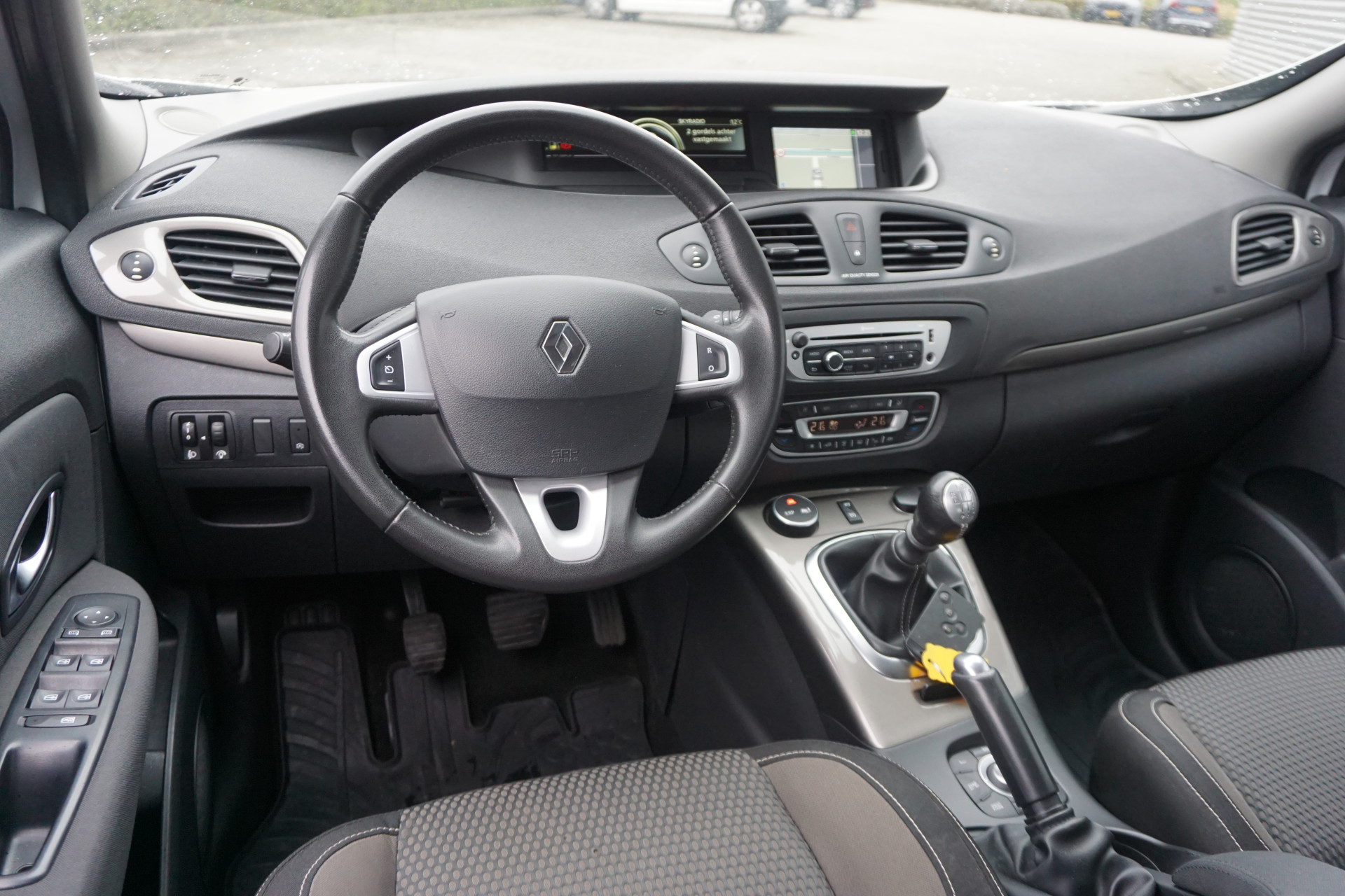 Nooit meer de weg kwijt: daarvoor zorgt het onboard navigatiesysteem. Met de automatische airconditioning selecteert u de gewenste temperatuur. Het systeem doet de rest. Het audiosysteem laat zich gemakkelijk bedienen met de audiobediening op het stuurwiel. Boem is ho? Niet bij deze Renault Scénic Xmod. De piepjes van de parkeersensoren waarschuwen u op tijd voor obstakels. Het drukke verkeer eist onderweg al uw aandacht op. Daarom is het goed dat deze Renault is voorzien van diverse systemen die u assisteren tijdens de rit. Een automatisch inschakelbare verlichting neemt het waar als het donker wordt of gaat schemeren, en schakelt dan automatisch de verlichting in. Op dezelfde manier "ziet" de regensensor de eerste spatjes regen en schakelt dan de ruitenwissers in, en als het harder gaat regenen zet hij de ruitenwissers ook in een snellere stand. U bent in deze Renault ook voorzien van cruise control, keyless entry, lederen stuur, centrale deurvergrendeling met afstandsbediening, boordcomputer en lederen versnellingspook.