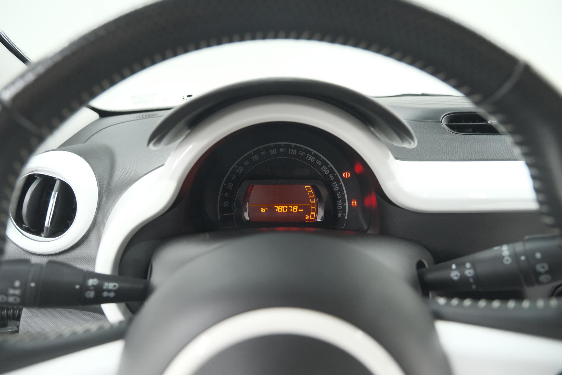 In deze Twingo vindt u schakelaars op het stuur om het audiosysteem met dab-ontvangst te bedienen. Ook over uw schouder ziet u onderweg niet alles wat er aan de achterzijde gebeurt. Daarom heeft deze Renault Twingo een achteropkomend verkeer waarschuwing. In deze auto kiest u zelf uw ideale temperatuur dankzij de airconditioning. Wat u ook in deze auto kunt vinden zijn lederen stuur, centrale deurvergrendeling met afstandsbediening, bagage afdekhoes en boordcomputer.
