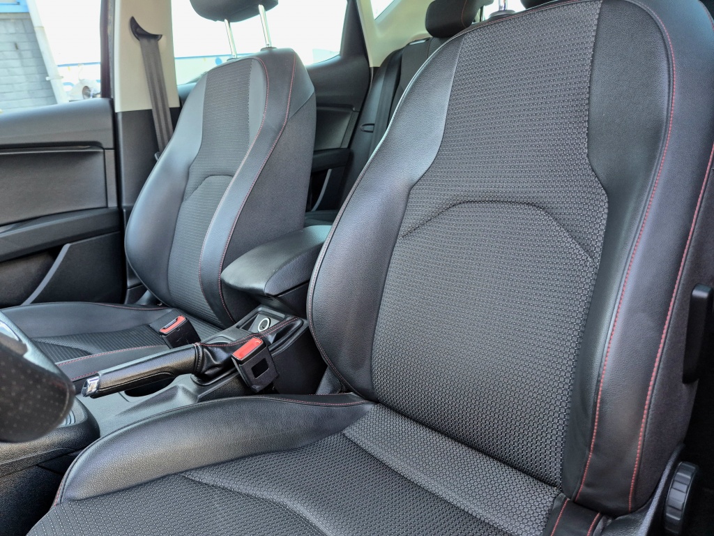 Neem plaats in de sportstoelen van de Seat Leon 1.4 TSI ACT FR Dynamic. en ervaar het comfort en de ondersteuning die ze bieden. Of je nu lange afstanden rijdt of een korte trip maakt, deze stoelen zorgen voor een aangename zitervaring.