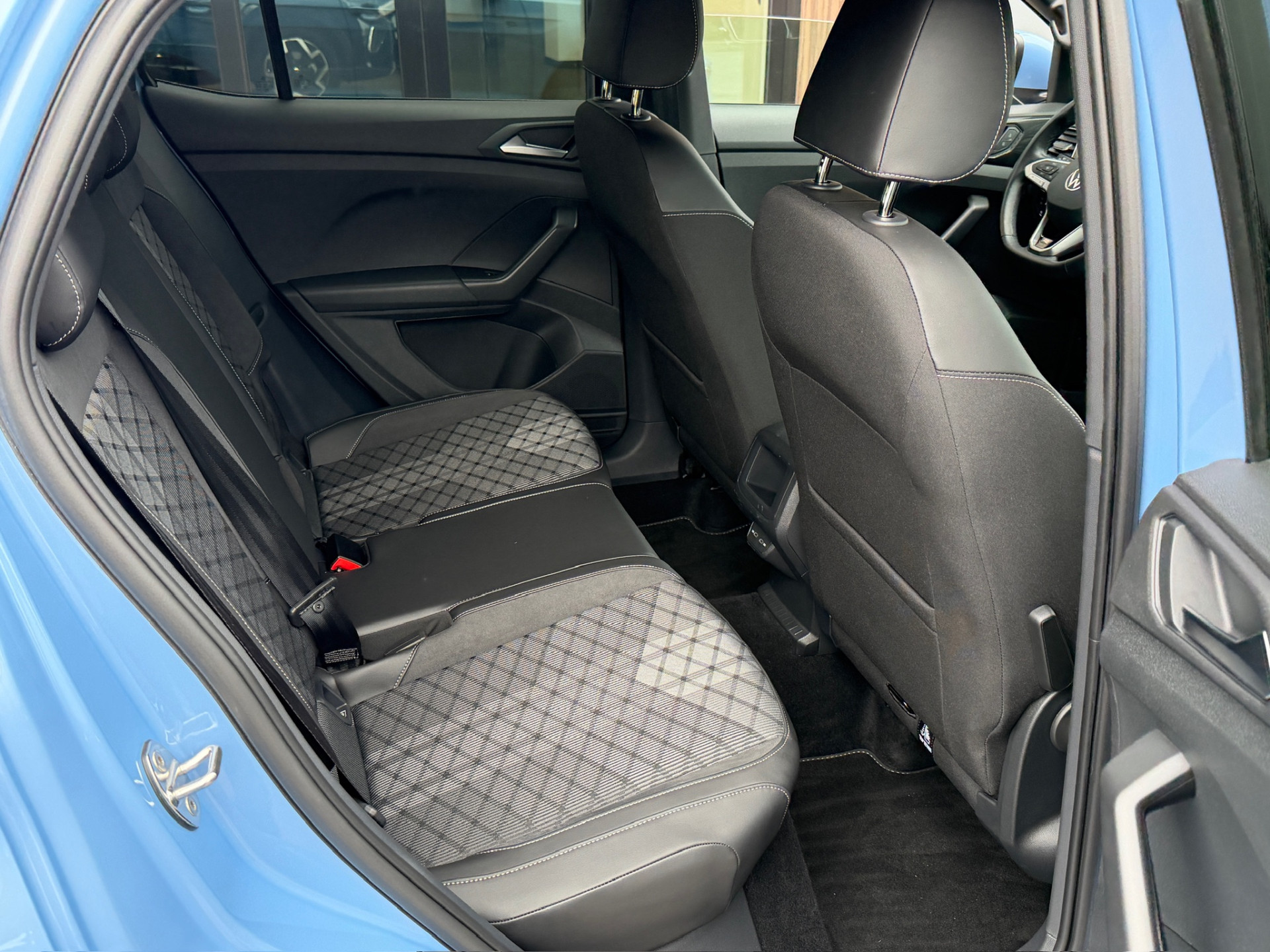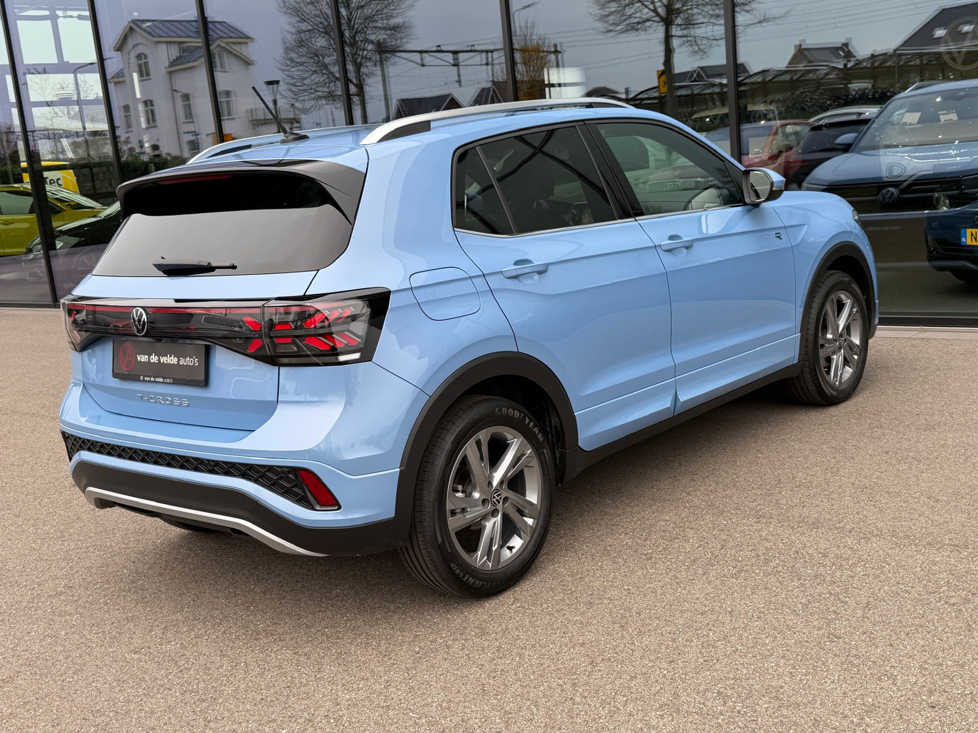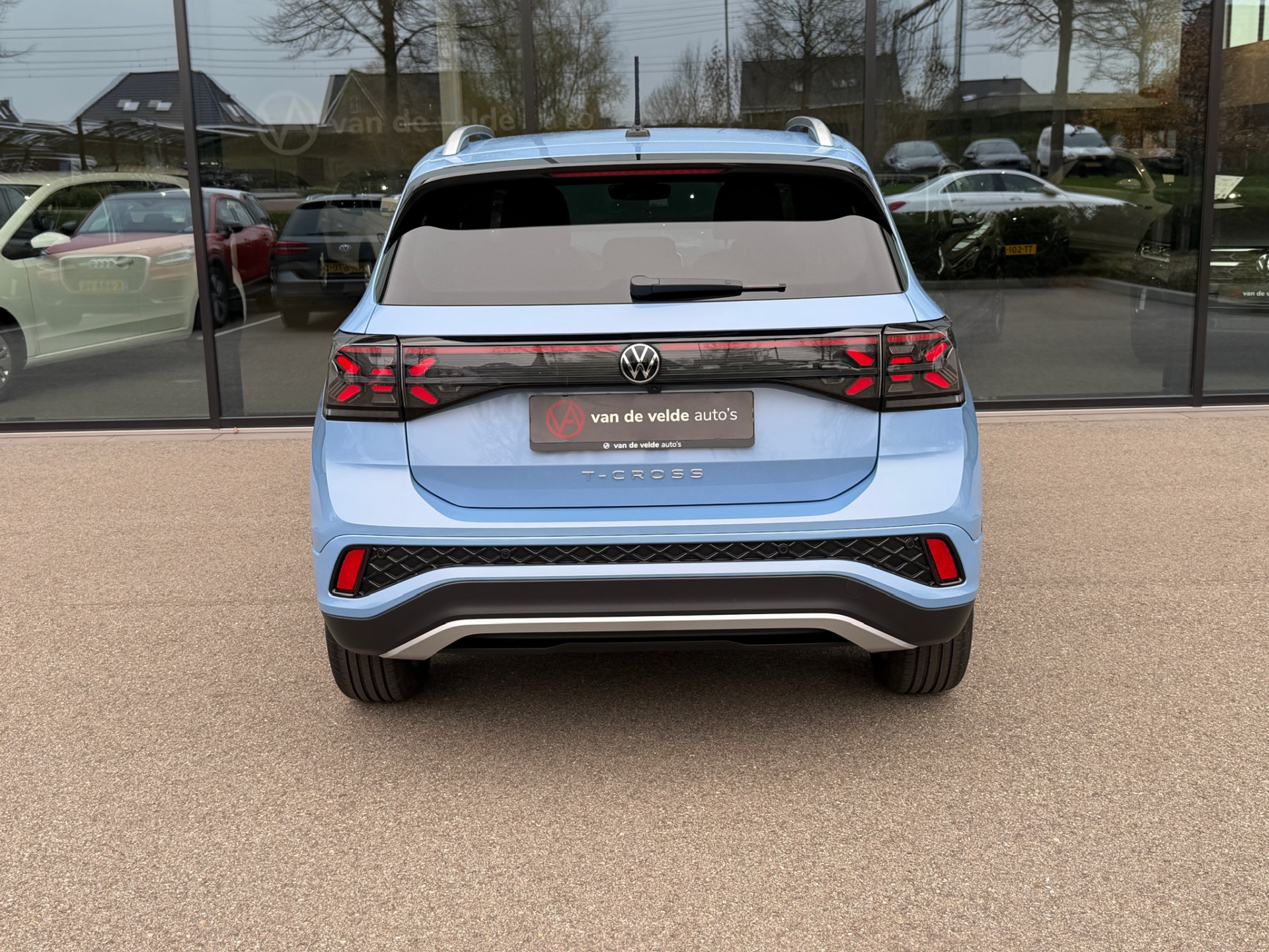 Volkswagen T-Cross met DSG automaat in sportieve R-line uitvoering in mooie kleur clear blue metallic.