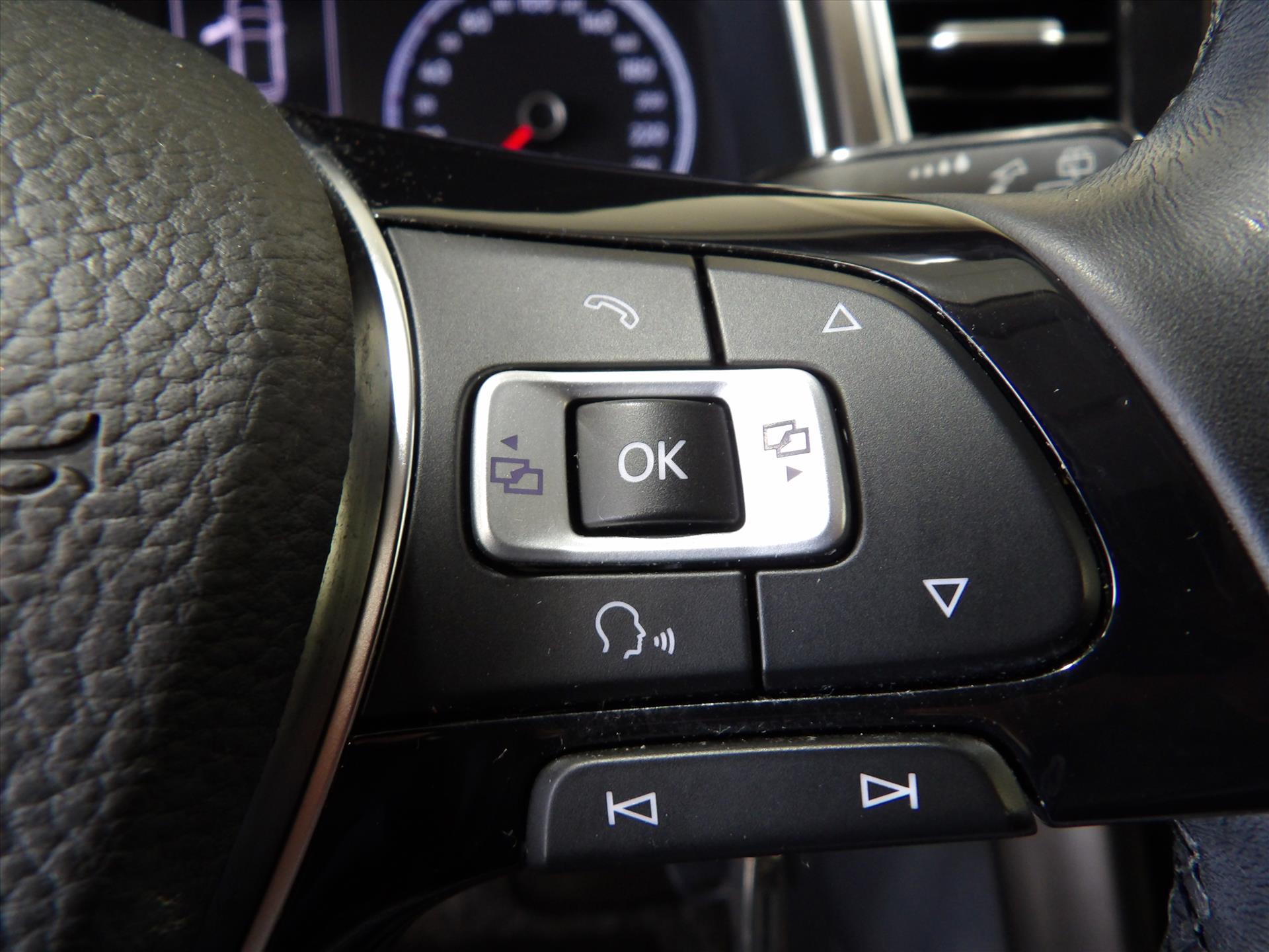 • Stuurwiel (driespaaks), multifunctioneel en met leder bekleed