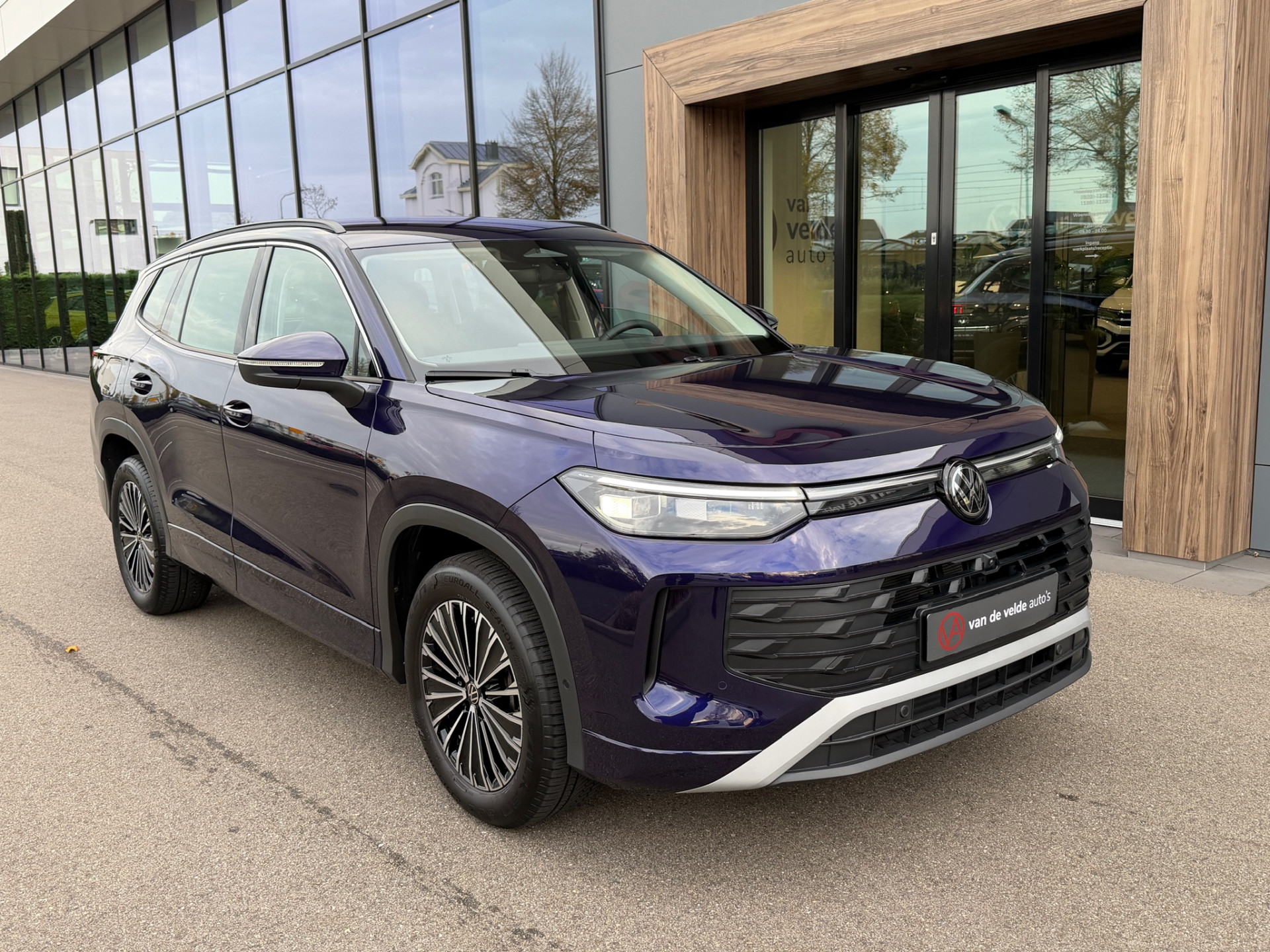 Nieuwste model Volkswagen Tayron 1.5 eTSI 150pk DSG automaat uitgevoerd met 7 zitplaatsen. De achterste zitrij kan worden neergeklapt waardoor er een lange laadruimte onstaat.