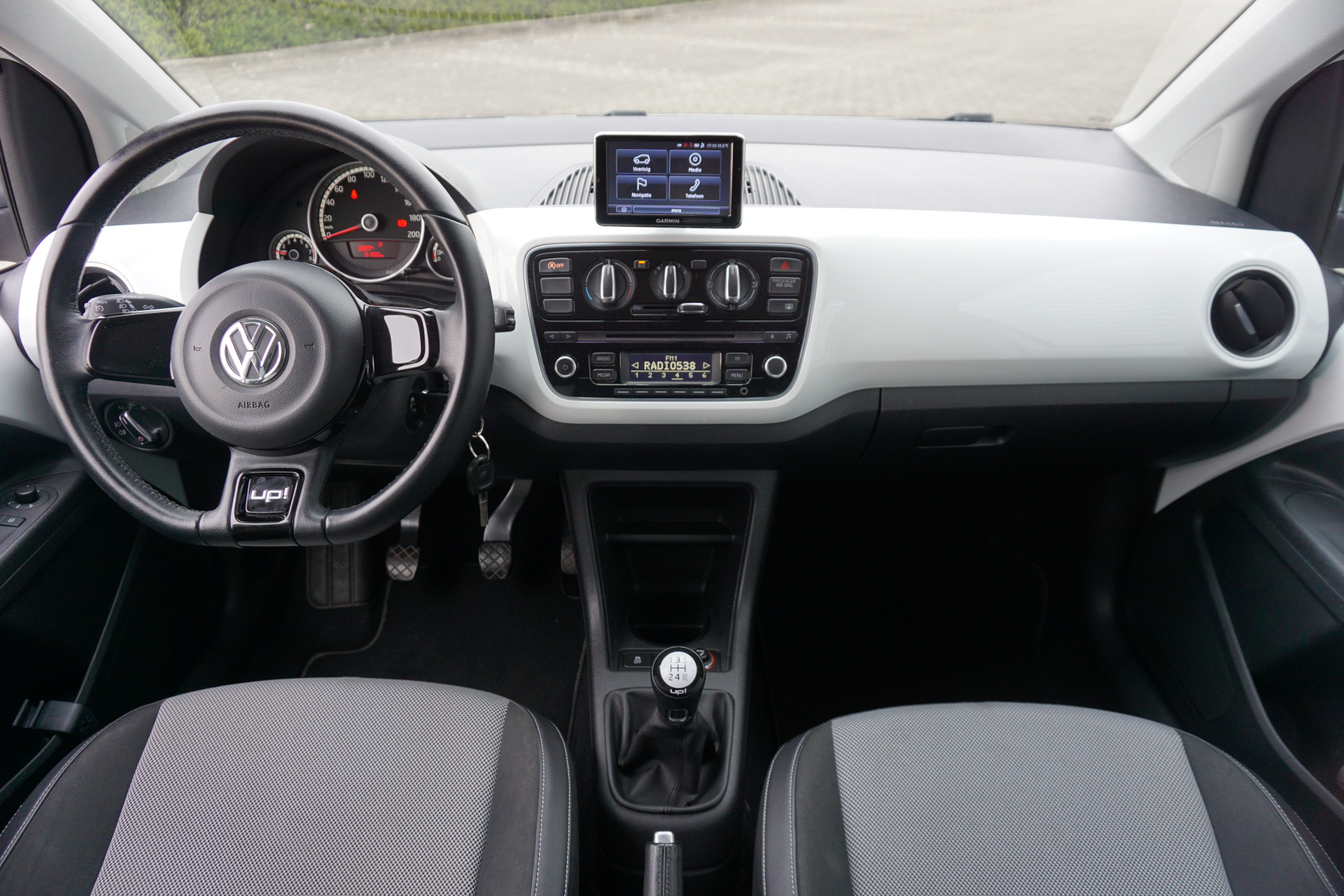 Een plekje vinden in de binnenstad is één, inparkeren is twee. Voor dat laatste heeft deze Volkswagen Up! prima parkeersensoren die u een handje helpen. De cruise control heeft een feilloos geheugen. Als u even vaart heeft geminderd, bent u na één klik weer op de oude snelheid. In een auto als deze mag u ook airconditioning verwachten. Deze Volkswagen is voorzien van navigatiesysteem, lederen stuur, centrale deurvergrendeling met afstandsbediening, boordcomputer en lederen versnellingspook.